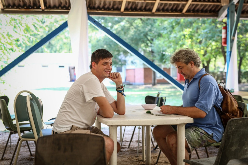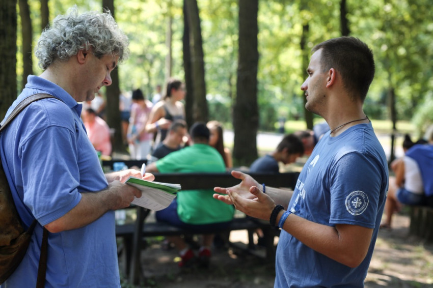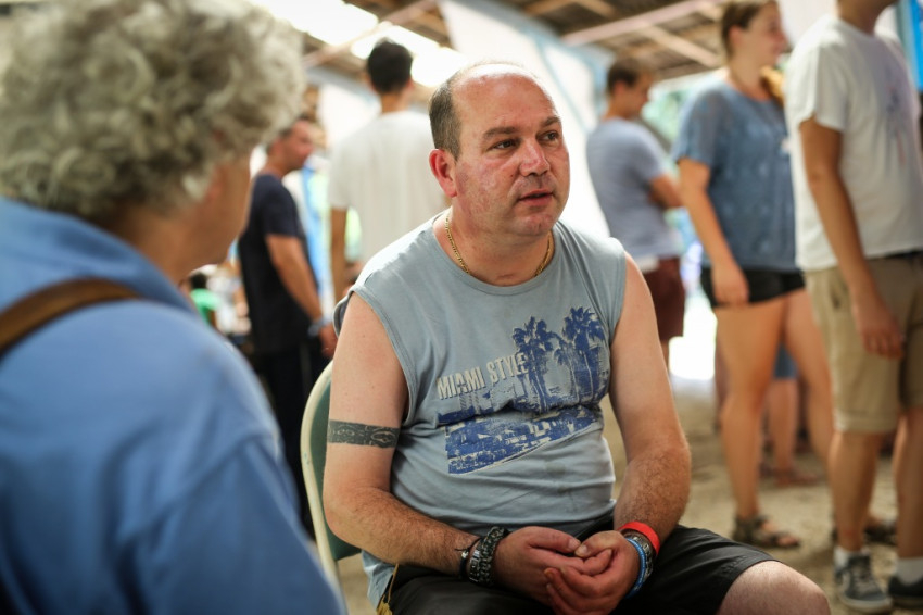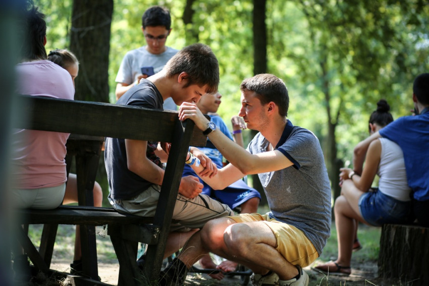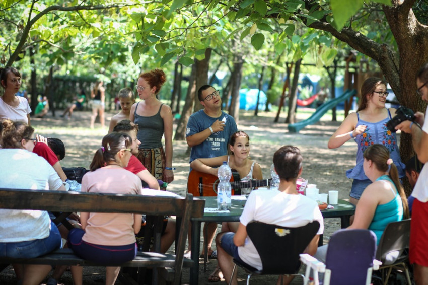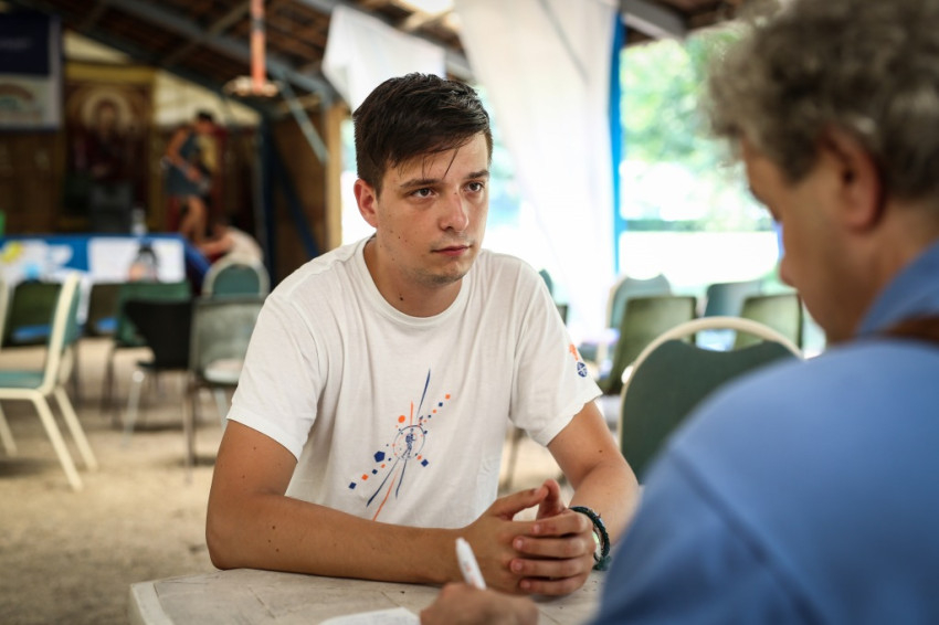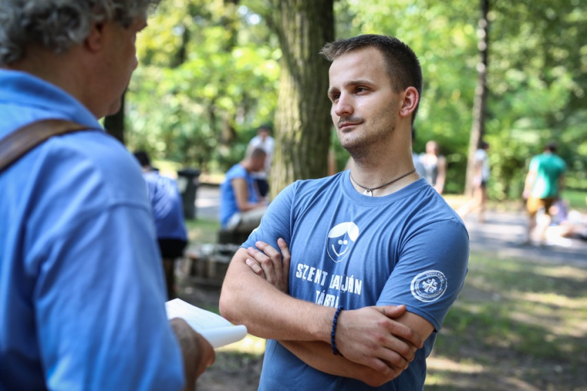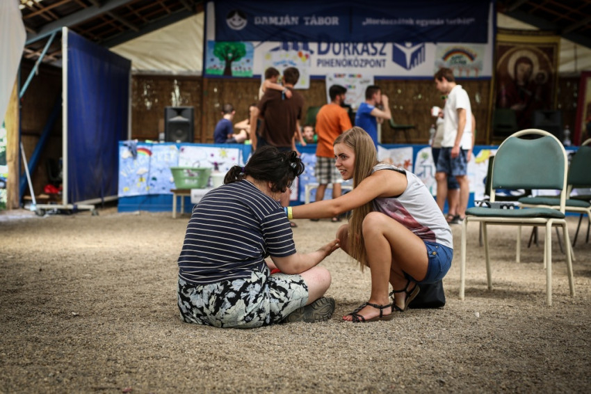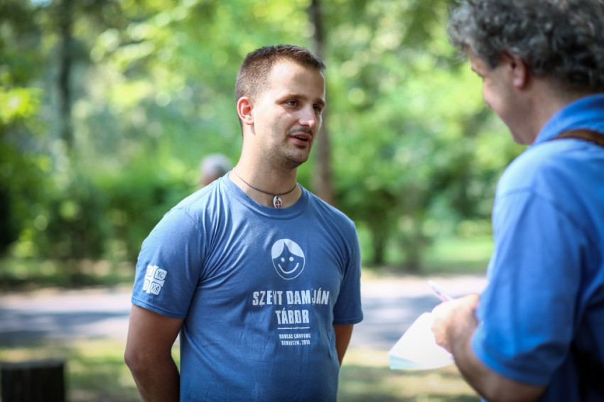 Tamás Ferenc görögkatolikus kispap fogad. Idén először és utoljára ő a Szent Damján-tábor vezetője, mert jövőre már szentelik. A sérült emberek táboroztatásának ötlete két évtizede, nyíregyházi görög kispapok körében született, de a táborozók nem csak görögkatolikusok, sőt nem is csak katolikusok; az egyik nagy nyíregyházi intézmény, a Magdaléneum például, amellyel együttműködnek, református kézben van. Idén 105 táborozójuk van, akiket 140 önkéntes fiatal segít.