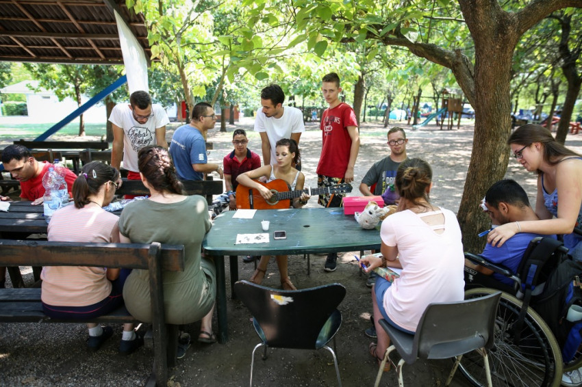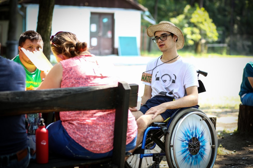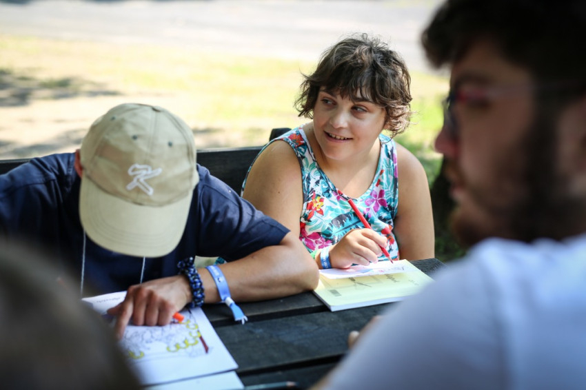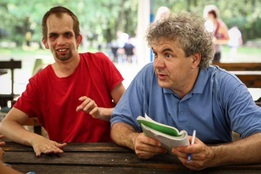 Futár András 2014 óta minden táboron részt vesz. Legjobban a segítőivel folytatott beszélgetéseket szereti itt, amikor, mint fogalmaz, kisírhatja nekik a lelkét. „Itt vigyáznak rám, és nem hagynak magamra”, mondja. „Nem mindennap boldog az ember, de itt elmondhatja, és ez segít, hogy egyre jobban ki tudja magát fejezni.”