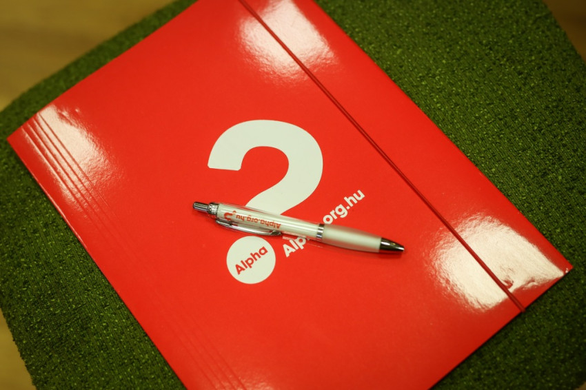 Rövid ima, majd hosszabb közös éneklés, dicsőítés után Füzes Ádám, a ház igazgatója mesél sokéves alphás tapasztalatairól, az Alpha történetéről, látásmódjáról. Körülbelül negyven éve Angliában, London elöregedő belvárosában, anglikán környezetben kezdődött. Az volt a cél, hogy a kereszténységet újra a társadalmat alakító tényezővé tegyék; az elöregedett, sőt nemegyszer kihalóban levő gyülekezeteket életre keltsék. A kísérlet annyira sikeres volt, hogy azóta 169 országban terjedt el, és 29 millió résztvevőt invitált meg alkalmaira az Alpha, amely 1998 óta Magyarországon is jelen van.