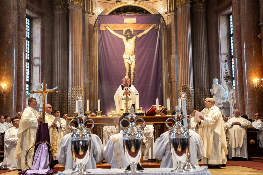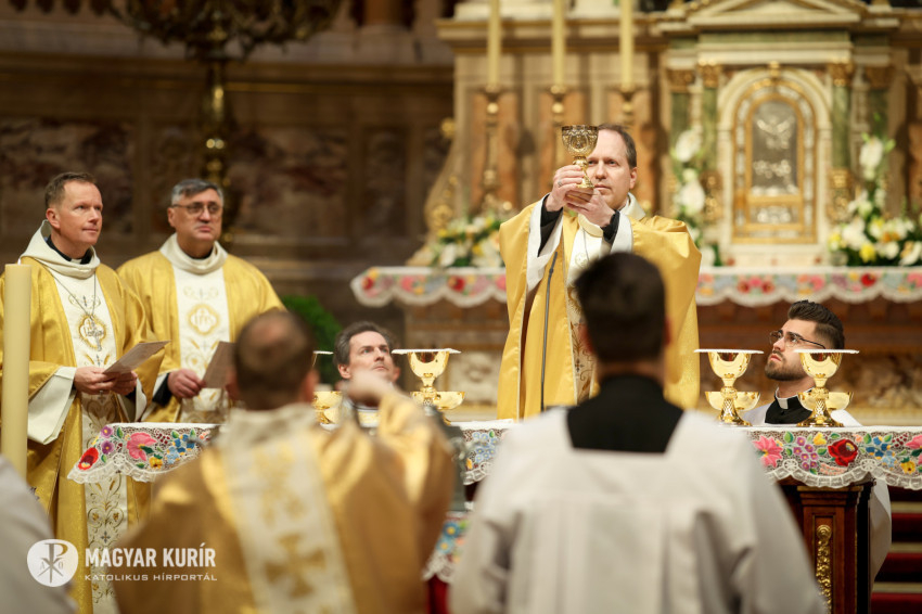 Palánki Ferenc rámutatott: nagycsütörtök a „rácsodálkozás napja” – rácsodálkozás a lét ajándékára, a meghívottságra és a papság kegyelmére.