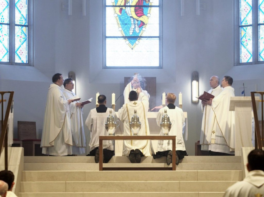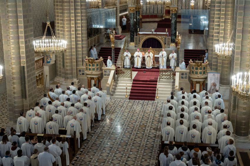Nagycsütörtök délelőttjén Székesfehérváron, a Szent István király-székesegyházban gyűltek össze az Székesfehérvári Egyházmegye papjai, az egyházmegyében működő szerzetesrendek, közösségek képviselői, hogy a krizmaszentelési misén megújítsák papi ígéretüket.