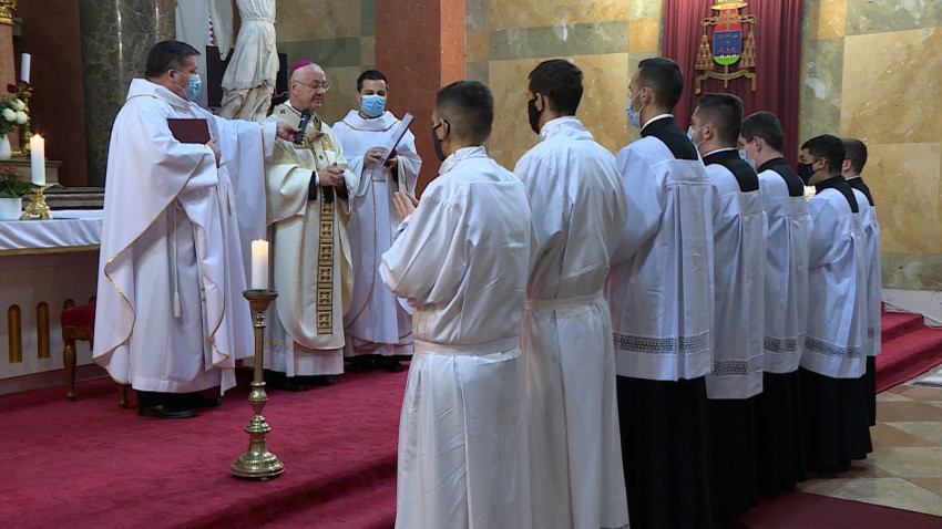 A szeminaristák az idei ünnepen elsőként megerősítették a kispapságra tett fogadalmukat, ezt követően pedig Buda Péter rektor megáldotta a papi ruhákat, amelyeket végül magukra öltöttek a hallgatók.