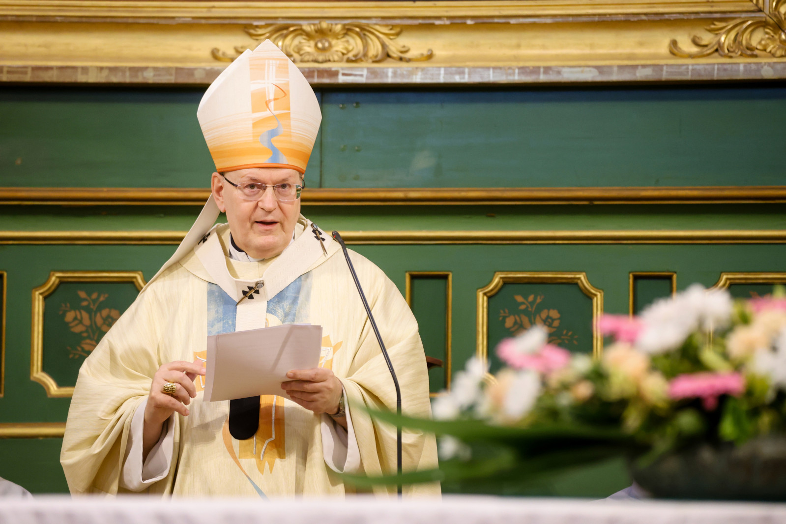 A szentmise elején Szkaliczki Örs OCist, a templom plébánosa köszöntötte a főpásztort és az ünneplő közösséget, megtiszteltetésnek nevezte, hogy ez a templom ad otthont ennek a szép hálaadó szentmisének, így az itteni plébániaközösség is kapcsolódik Ferenc pápa magyarországi látogatásához.