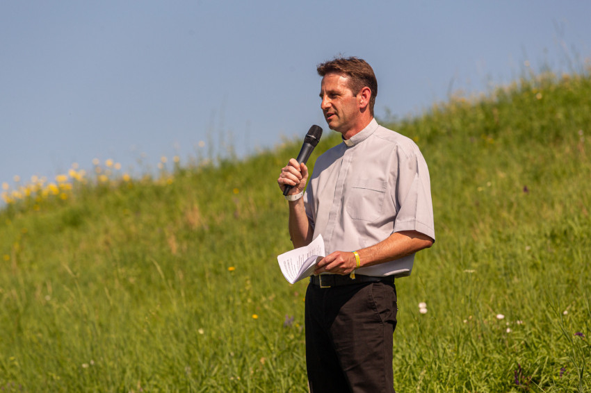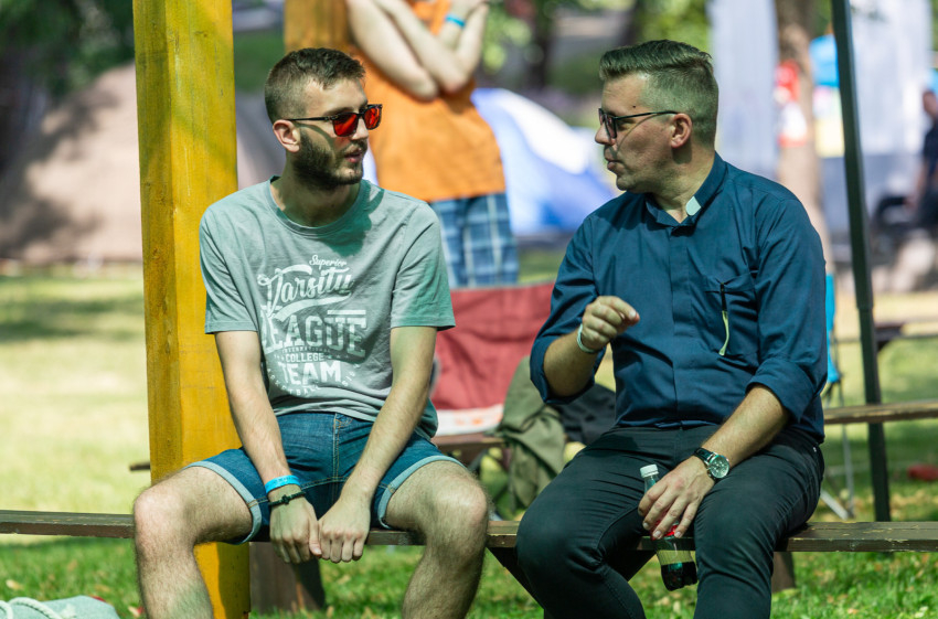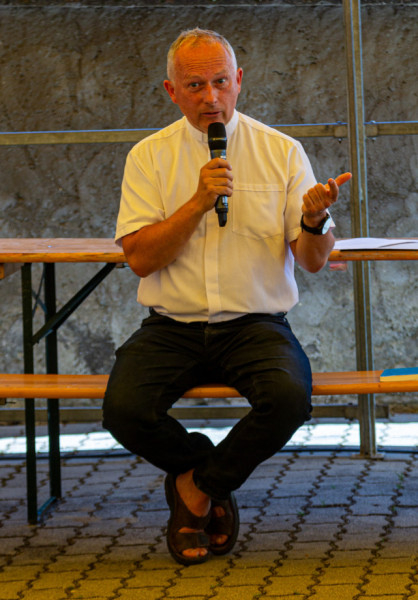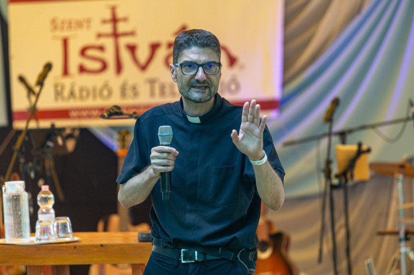 Délután Ailer Gellért, a Redemptoris Mater Missziós Szeminárium rektorhelyettesének tanúságtételét, elmélkedését hallgathatták meg a résztvevők. A lelkipásztor az első angyal és az első asszony közötti párbeszédet idézte fel, Lucifer és Éva történetét, amikor az ördög lépre csalja az embert, Isten iránti kételyt keltve.