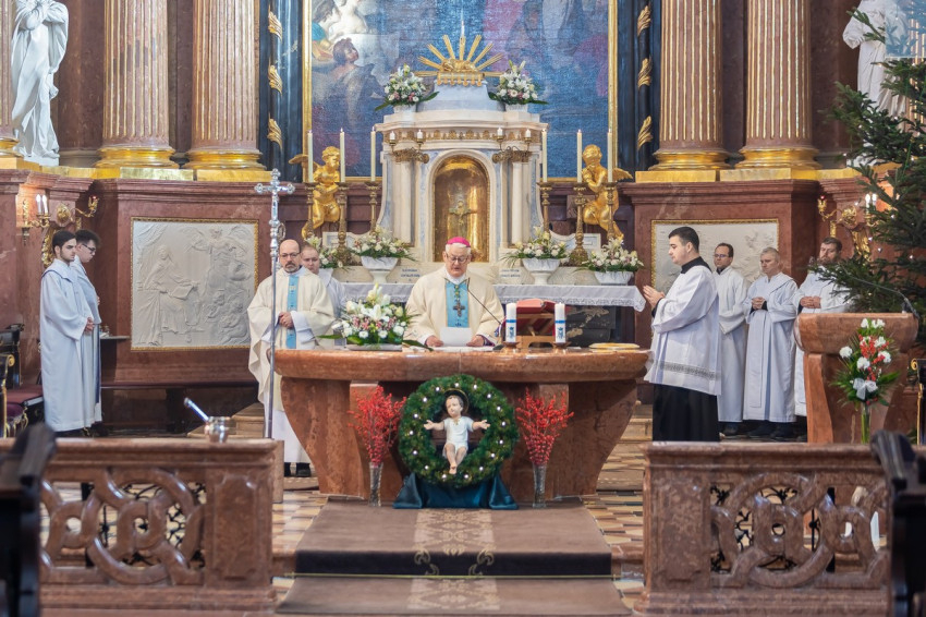 A kalocsai Nagyboldogasszony-főszékesegyházban Bábel Balázs kalocsa-kecskeméti érsek mutatta be újév napján az ünnepi szentmisét.