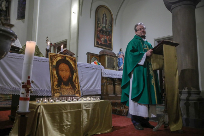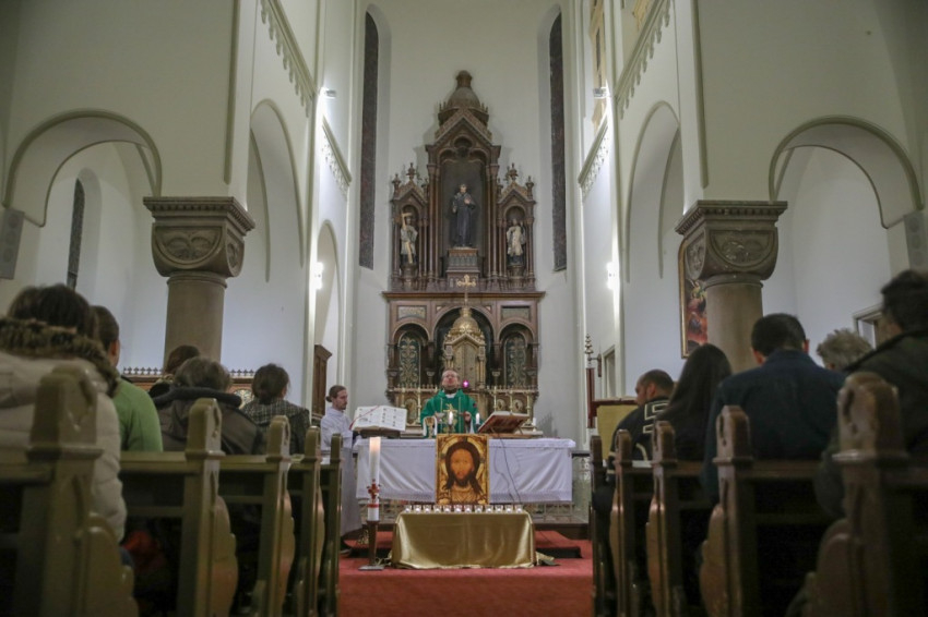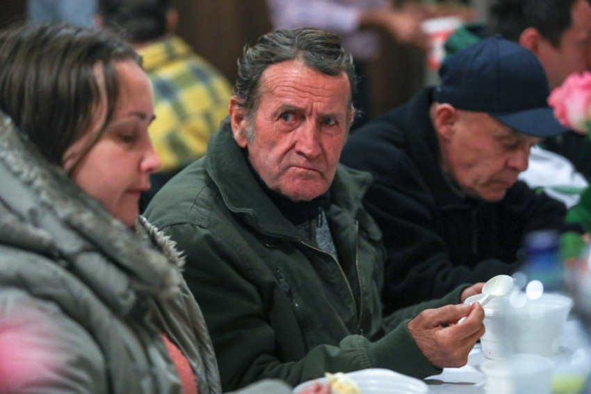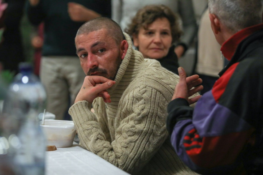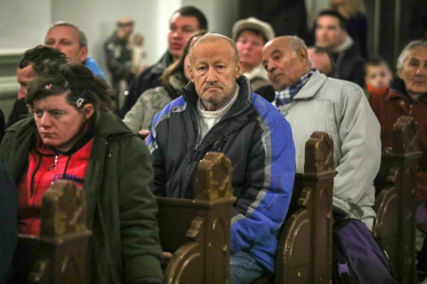 A szegények, hajléktalanok nagy figyelemmel kísérték szavait, és örömmel vettek részt a keresztelési szertartáson. Családias hangulatot teremtett a szentek segítségül hívása.