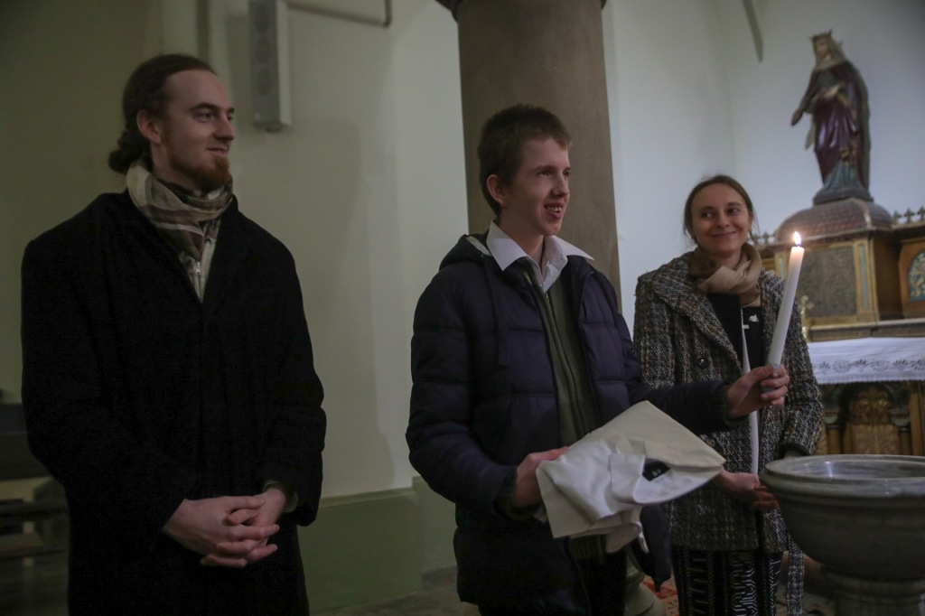Az ő átalakulásának csodája áll a keresztelő hátterében: megismerkedett a közösségben fiatalokkal, megismerte általuk az evangéliumot, és most az egész keresztény család tagja lett. Koronkai Zoltán jezsuita nagy szeretettel fordult felé a szentmisén, homíliájában is a keresztségről beszélt, amely által az ember Istennek végérvényesen a barátja lesz.