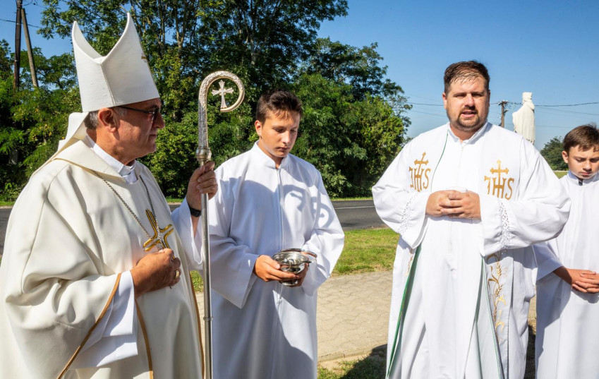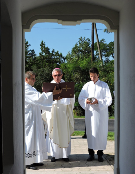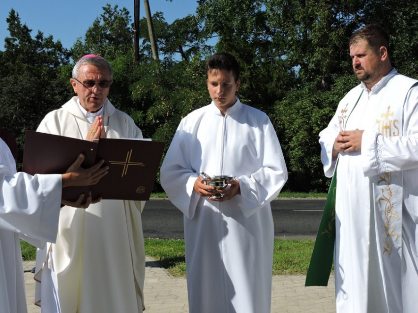Az ünnepi szentmise a Győr-Moson-Sopron megyei templom megáldásával vette kezdetét. A püspök a templom bejáratánál mondott könyörgést követően meghintette szenteltvízzel a jelenlevőket és a falakat.