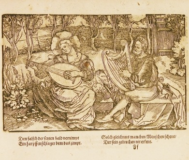 A zene a Bibliában is megjelenik: az Ószövetség több könyve foglalkozik vele. Miután felépült a jeruzsálemi templom, Salamon megszervezte a zenekart is: több mint ezer pap működött közre hangszereken a nagyobb istentiszteletek alkalmával. Augustin Calmet francia bencés szerzetes, teológus bibliai képes szótárában (Dictionnaire historique… de la Bible, Párizs, 1730) a jeruzsálemi templom zenés ünnepségeinek látványos ábrázolása látható. Az illusztrált 16. századi bibliák sorából kiemelkedik Luther Márton Szentírás-fordításának 1541-ben Wittenbergben, Lucas Cranach metszeteivel kiadott példánya, vagy a Christoph Plantin-féle, Antwerpenben 1583-ban megjelent latin nyelvű kiadás, melyekben számos zenei vonatkozású illusztráció is található.