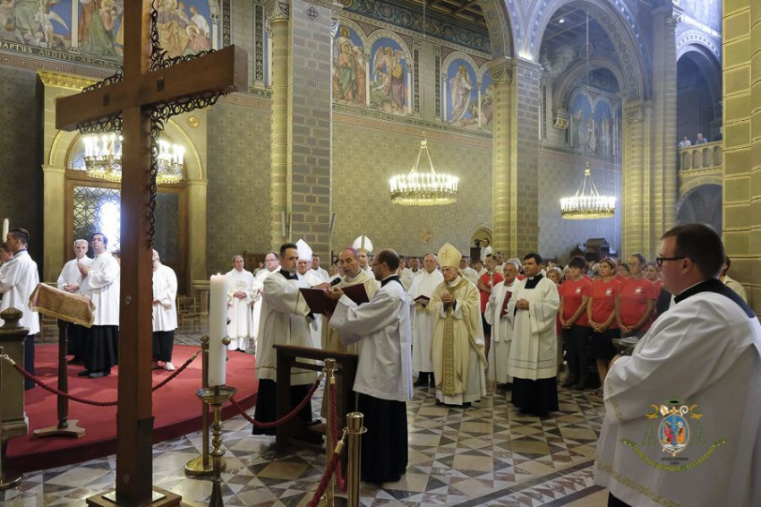 Ferenc pápa az életszentségről szólva kifejti: Isten mindent kér és mindent ígér. Isten mindent kér… – azt várnánk, hogy úgy fejeződjön be e mondat: és mindent ad. De nem így fejeződik be, hanem úgy, hogy mindent ígér – emelte ki Udvardy György. Hozzátette: ez a minden a szeretet és a hit bizalma Isten felé, aki önmagát adja nekünk. Jézus példát ad erre a szeretetre. Bevonja tanítványait saját küldetésébe, és rájuk bízza a megszentelés művét, a kereszt művét. Szeretetének, követésének nincs más feltétele: vállalni azt a keresztet, ami üdvöt eredményez, ami jövőt tár fel előttünk, de a halálunk fája, hogy az élet fája legyen. Rájuk bízza ezt a nagy titkot, az Atya szeretetét, rájuk bízza küldetését, és létrehozza az Egyházat. A teremtés kezdetén Istentől szándékolt közösség az Egyház. Hogy legyen a népnek tanítása, hogy szentté tudjon válni, hogy biztos legyen abban, hogy az Egyház szentségei szent életre vezetnek, biztos lehessen abban, hogy ha Isten népéhez tartozik, akkor életében az Úr törvénye tud érvényesülni. A megszentelődésben, áldozatvállalásban, kereszthordozásban föltárul az emberi lét méltósága. Választott nép, királyi papság, szent nemzet vagyunk krisztusi méltósággal. Ezt a méltóságot ismerjük fel az Egyházban, és ezt a méltóságot ünnepeljük most, ezen az évfordulón.