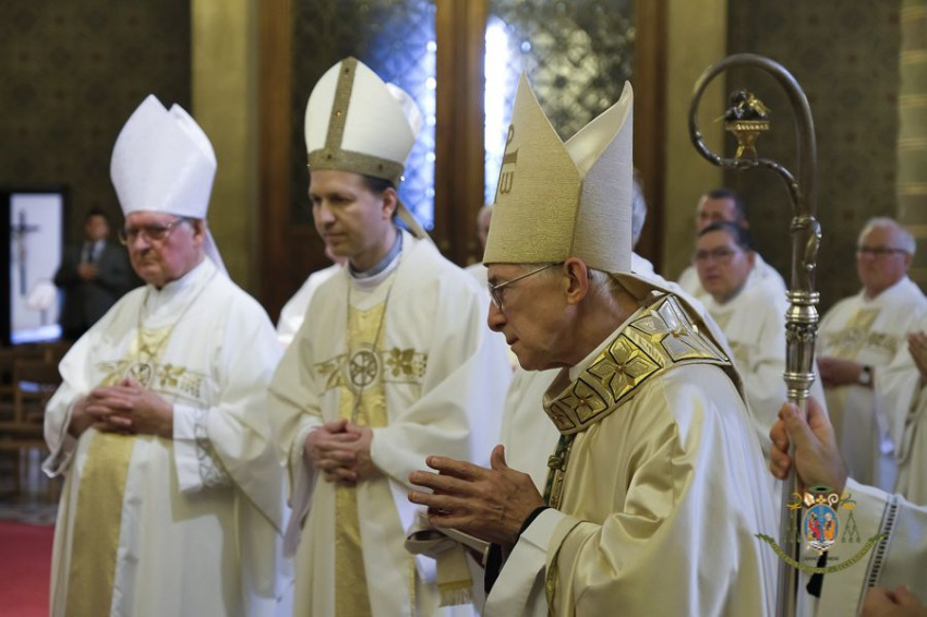 Hálát adunk az 1010 évben azokért a kapcsolatokért, tevékenységekért, ami a népért, a nép javáért, a közjóért, a kultúráért történt. A közjóban az evangélium ereje, az embernek a jövője, az Istentől szándékolt jövője is megmutatkozik. Jó pásztorként vezet bennünket az Úr. Tőlem is kérdezi, tőlünk is kérdezi ezen a napon: szeretsz-e engem? Az Egyház gyermekeinek méltóságában akar ma megerősíteni” – hangzott el Udvardy György püspök homíliájában.