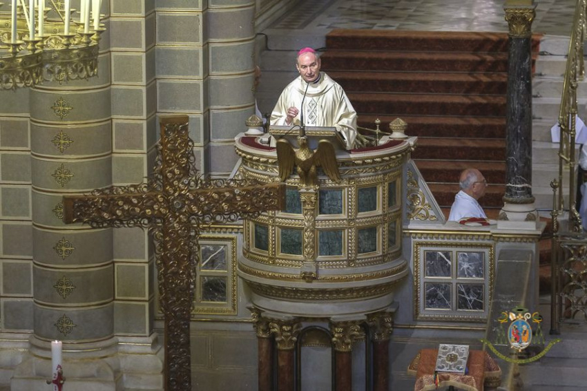 „Menjetek el az egész világra – ebből a krisztusi küldetésből jut el hozzánk Isten evangéliuma, Isten örömhíre. Megérint bennünket – így születik meg 1010 évvel ezelőtt a Pécsi Egyházmegye. A pásztori gondoskodásnak, a megszentelődésnek műveként. Milyen jó visszagondolni erre a hosszú történelemre” – fogalmazott a főpásztor. „Testvérek, hála van a szívünkben! Hála az Egyházért, azért, hogy az Egyház tagjai lehetünk. Hála az elődökért, hála van a szívünkben a plébánián, oktatási intézményeinkben, közösségeinkben történő munkáért. És hála van a szívünkben már előre a jövőért. Mert biztos, hogy Isten pásztorként gondoskodik az ő népéről. Megvalljuk ebben az ünnepi alkalomban is, hogy hiszünk a kereszt jövőjében, hiszünk a kereszt erejében, a kereszt bizonyosságában. Különös módon is szeretnénk élni a felkészülés kegyelmeivel, hogy a következő esztendőben nagy örömmel tudjuk ünnepelni a Nemzetközi Eucharisztikus Kongresszusban azt a Krisztust, aki élettel ajándékoz meg bennünket.