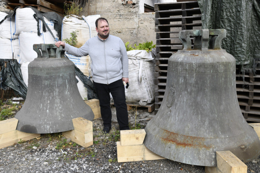 A plébániai gyűjtésbe bekapcsolódott Esztergom Megyei Jogú Város Önkormányzata, így a nyár során megtörtént az első nagyobb lépés: a plébánia megvásárolta egy bezárt németországi templom három nagyharangját. Ezeket 1964-ben öntötte a szakmájában kiváló mesterként ismert Karl Czudnochowsky. A Jézus- (2 902 kg), a Mária- (1 670 kg) és a József- (1 181 kg) harangok tökéletesen illeszkednek a bazilika „hangképébe“: B–des1–es1 tónusuk kiválóan egészíti ki a nagyharang (Ges1) és a kisharang (b1) hangját.