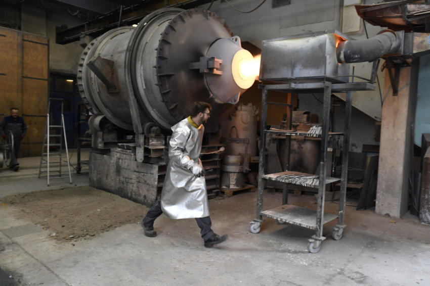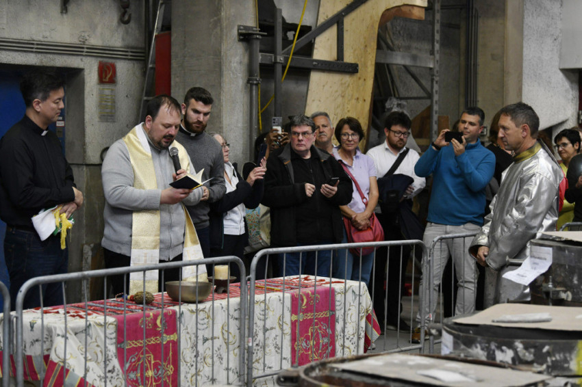 Először a harangöntő dinasztia „pátriárkája“, a 85 esztendős Christoph Grassmayr vezette végig a küldöttséget a kiállítótéren, részletesen bemutatva a teljes folyamatot, amely a tervezéstől, formázástól az öntésen át egészen az első megszólalásig tart. Ezt követően a jelenlévő papság román, kínai és magyar nyelven, más és más szertartás keretében imádkozott a vállalkozás sikeréért. Az esztergomi csapat imádsággal és énekkel kérte a Boldogasszony és Szent István király közbenjárását. Mivel az új harangok közül az esztergomi volt a legnagyobb, ezért ez került utolsóként sorra. Bár maga a formába való öntés alig három percig tartott, a teljes, közel egy órás munkafolyamat helyszínen való átélése mindenki számára maradandó emléket jelent.