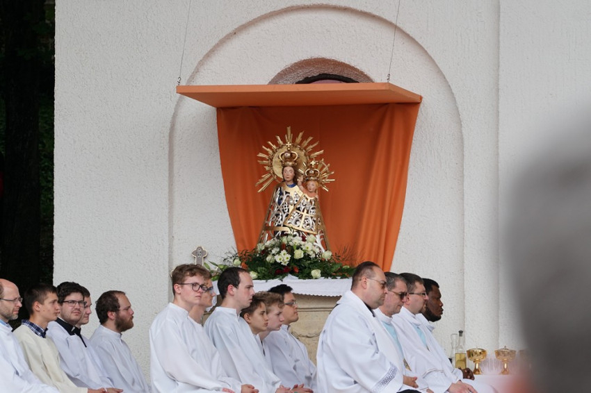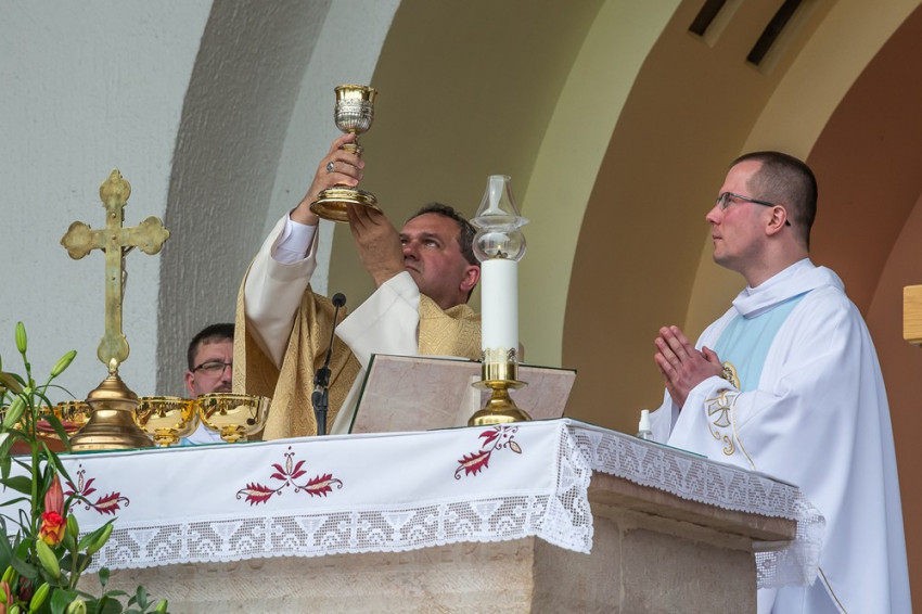 A kegyhely szabadtéri oltáránál bemutatott szentmisében, melynek főcelebránsa Felföldi László püspök volt, homíliájában a főpásztor az emberi élet legfontosabb és legkülönlegesebb pillanatának nevezte a megérkezést, amit a zarándoklat résztvevői maguk is személyesen is megéltek a hosszú és fárasztó út után.