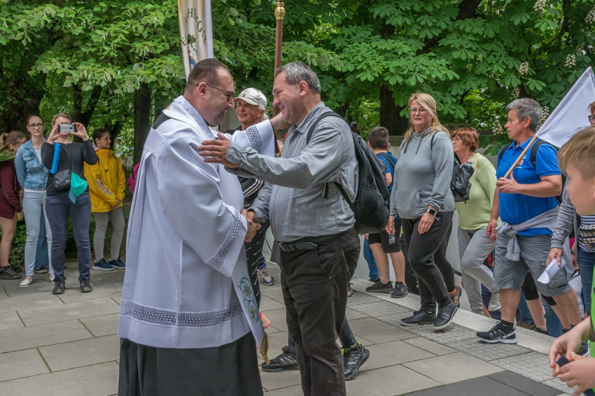 A tervezettek szerint 14 óra körül érkezett meg a menet eleje, hogy aztán 20–25 percen át áramoljanak be a megfáradt zarándokok a kegyhelyre.