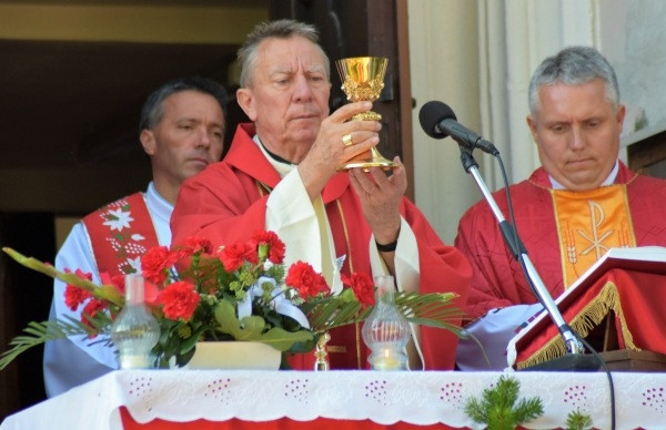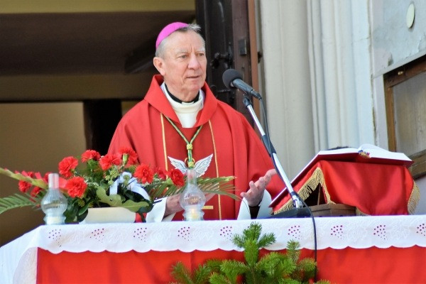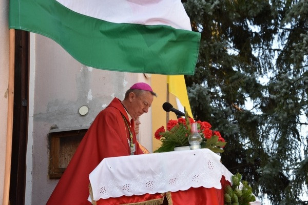 A szentmise kezdetén a főpásztor hálát adott a templomért, amely több mint másfél évszázada fogadja a helyieket és a zarándokokat, majd a templom nevére utalva feltette a kérdést: „Mit mutat nekünk ma Krisztus keresztje, a Szent Kereszt?”