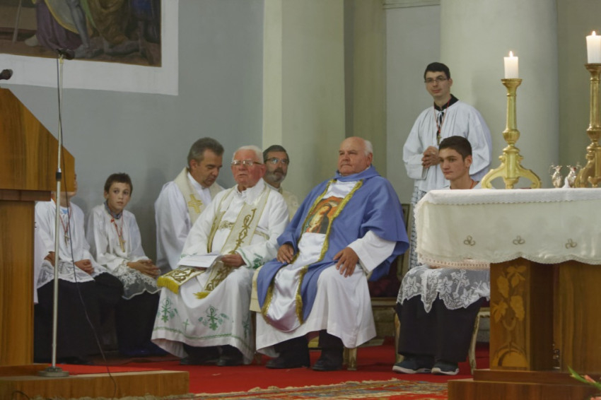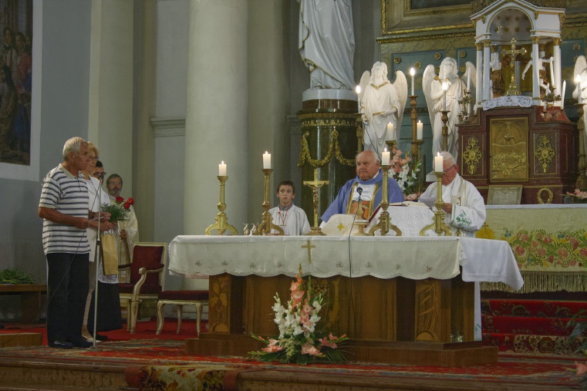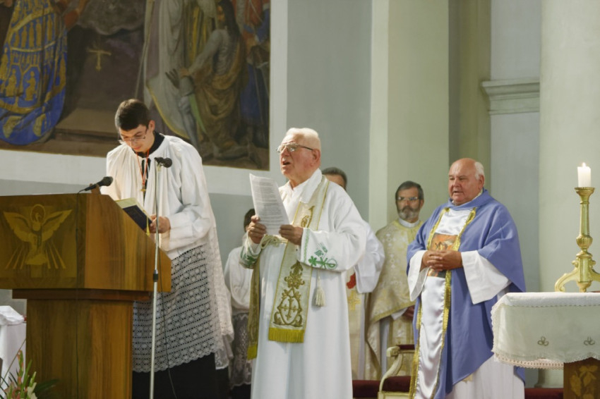 A szentmise elején ministránsok köszöntötték verssel a jubiláló aranymisés János atyát, majd az egyházközség világi elnöke köszöntötte a jelen lévő atyákat, külön kiemelve itteni plébánosságuk alatt szerzett érdemeiket.