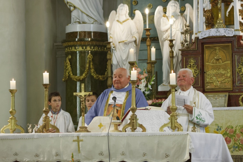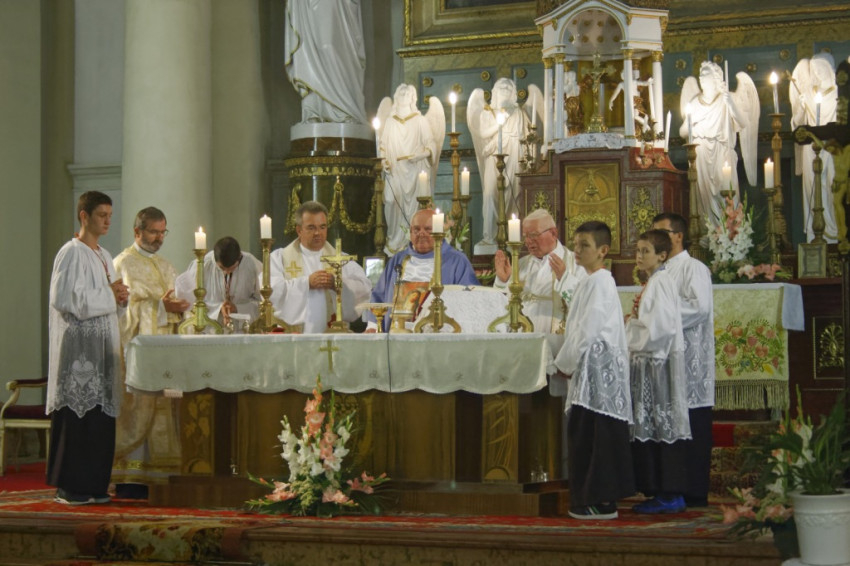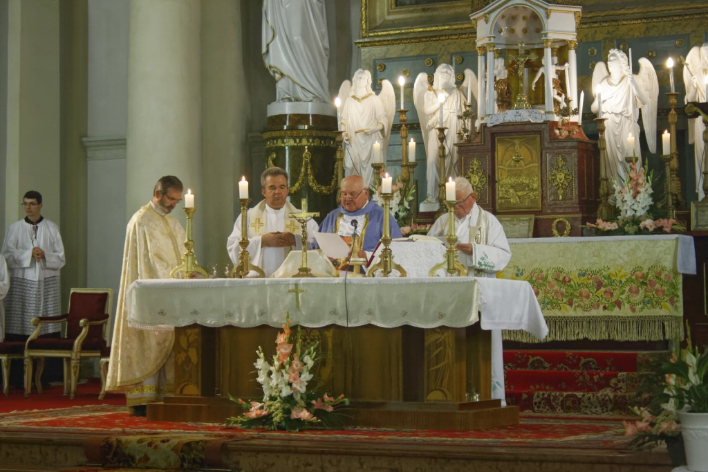 A legszentebb áldozatot főtisztelendő Schmatovits János aranymisés székesegyházi prépost-kanonok, egyetemi tanár mutatta be, aki 1994 és 2000 között volt a templom lelkipásztora. Schmatovits atyával – aki a győr-újvárosi Segítő Szűzanya ábrázolásával díszített miseruhát viselt – koncelebrált Ferling György, aki 2000 és 2003 között volt a templom plébánosa, Polgári László újvárosi görögkatolikus parókus és Zsebedics József, a jelenlegi plébános.