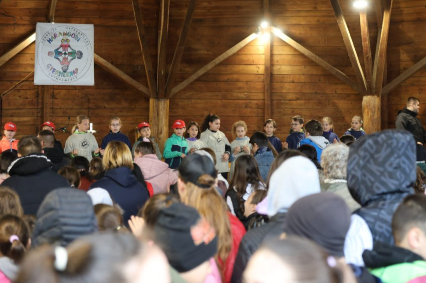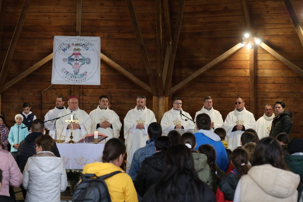 A nap indításaként a résztvevők a debreceni Megtestesülés-plébániára járó hittanosok és Jakab Zsuzsanna hitoktató vezetésével együtt elénekelték a 9. harangodi gyereknapra íródott, Járjuk a tábort kezdetű éneket.