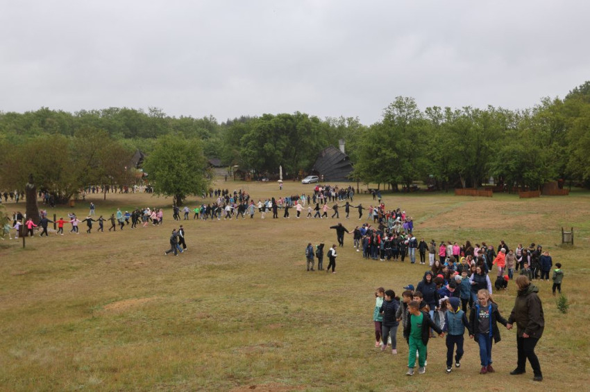 A gyereksereg körbe is járta a tábort, hosszú láncban.