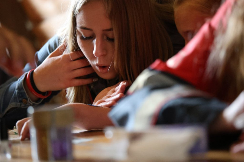 A nyíregyházi Szent Imre-gimnázium asztalainál papírvirágok készültek, illetve volt zsákbamacska és sok-sok játék.