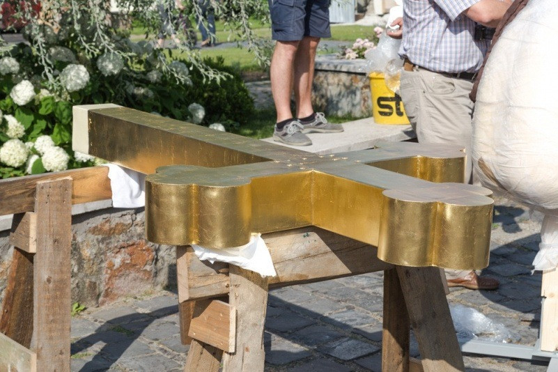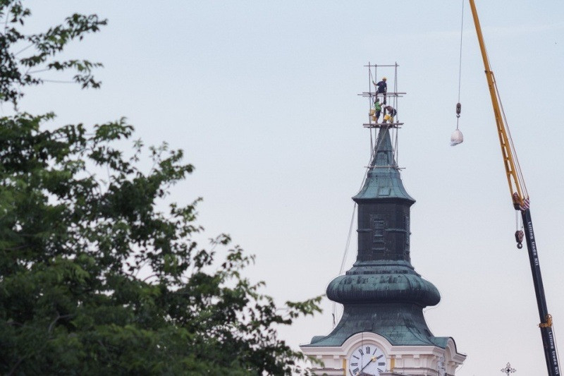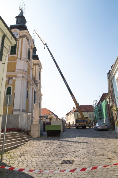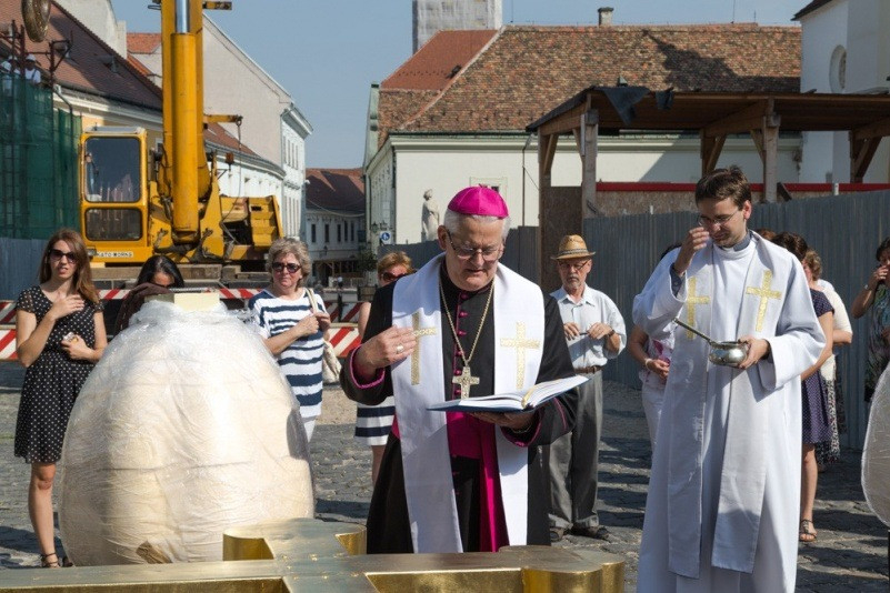 A Szent István-székesegyház a Székesfehérvári Egyházmegye főtemploma, Székesfehérvár belvárosának egyik legjelentősebb műemléke. A rendkívül gazdag, barokk, néhol gótikus elemeket viselő bazilika északi homlokzati elemei 2014 nyarán leomlottak, így szükségessé vált az épület teljes felújítása. A támogatásoknak köszönhetően a székesegyház tetőszerkezetének teljes körű helyreállítása 2015 szeptemberében elkészült, majd megkezdődhetett a templom homlokzatának felújítása. Idén áprilisban aranyozás céljából leemelték a székesegyház északi tornyát koronázó keresztet, amelynek ürege egy korrodálódott fémhengerben üveg időkapszulát rejtett.
