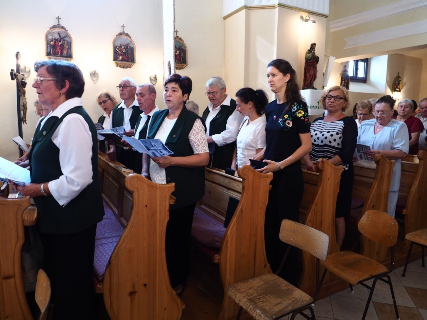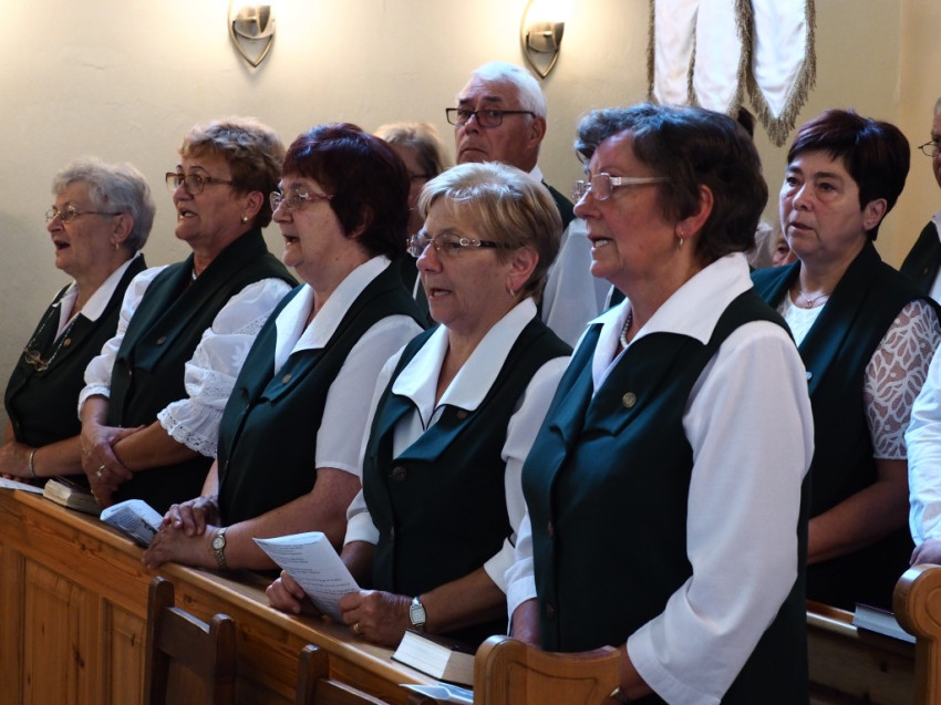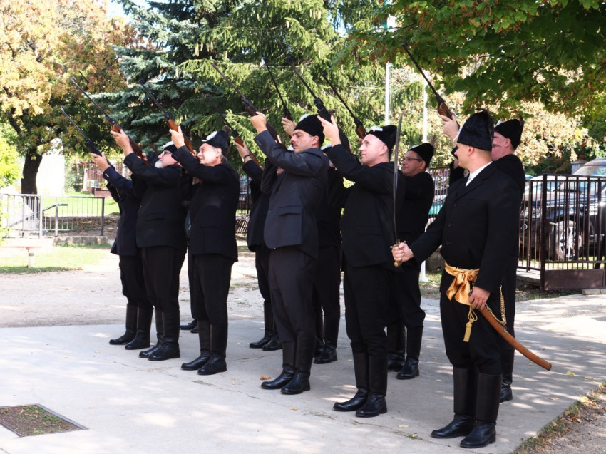 A szentmisére való bevonulás ünnepélyességéhez hozzájárult a tótvázsonyi hagyományőrző Pirgerek jelenléte és díszsortüze.