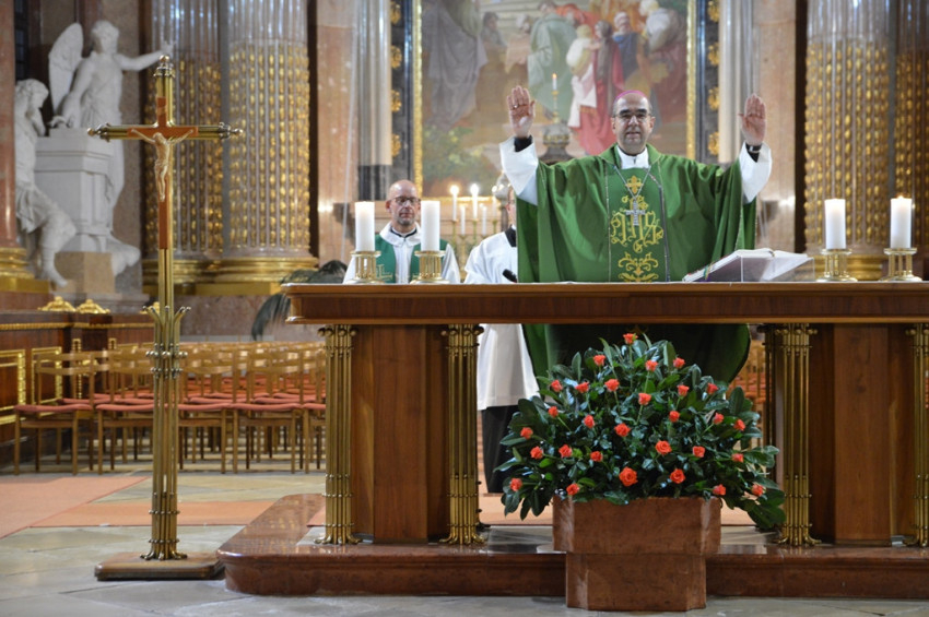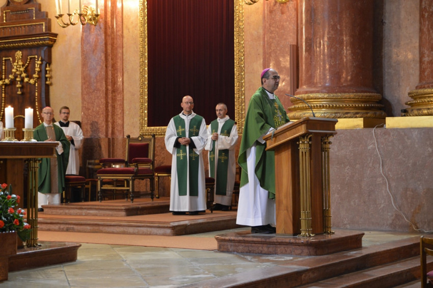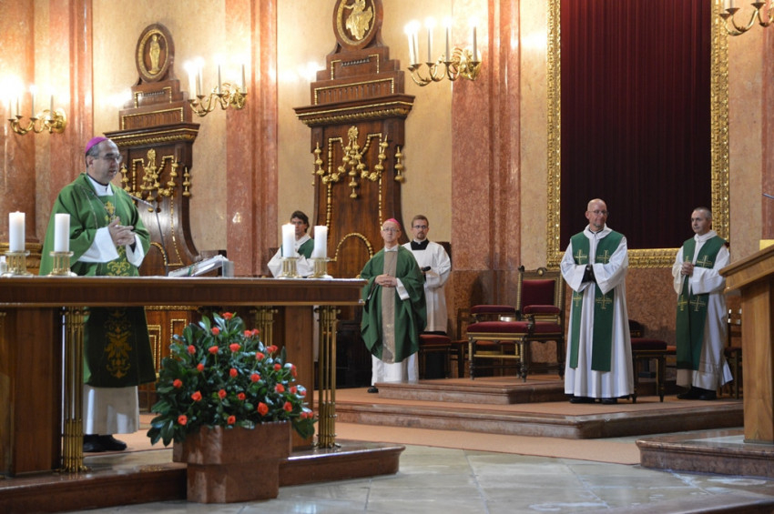 A főpásztor szentbeszéde elején köszöntötte Márfi Gyula nyugalmazott érseket, a szerzeteseket, paptestvéreit, valamint a nagy számban megjelent híveket.