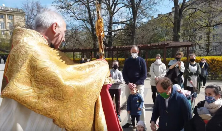Az asszisztencián kívül idén is néhány hívő kísérte a budai ferences plébániáról induló húsvéti útján az Oltáriszentséget.