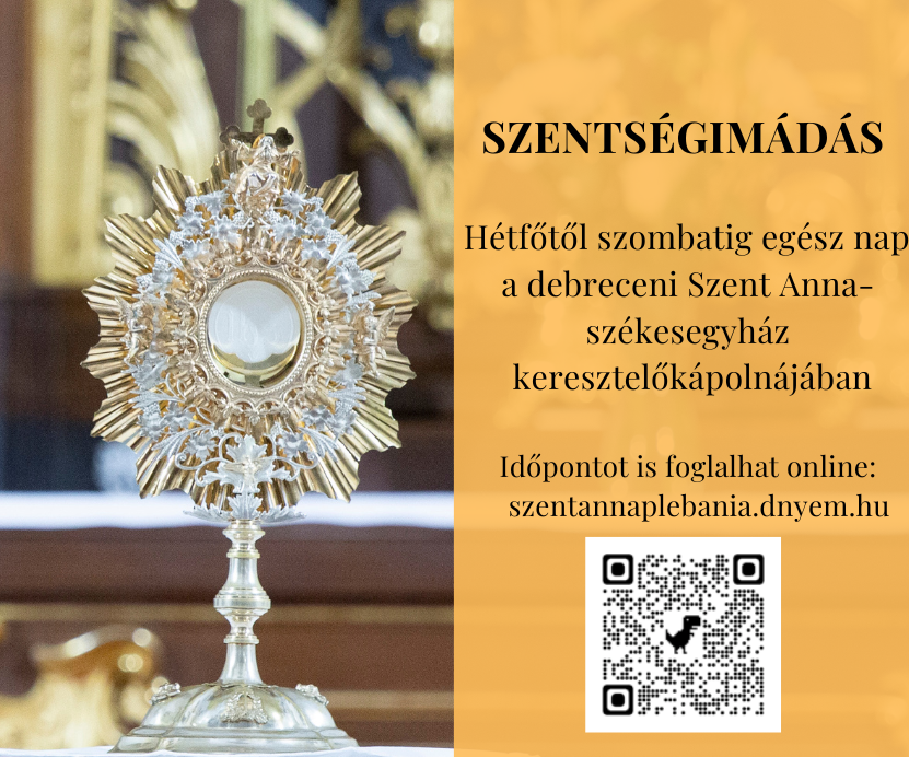 Debrecenben 2024-ben is szeretettel várják a közösségek, imacsoportok, családok, egyének jelentkezését erre a különleges lehetőségre, amelyre időpontot az egyházközség weboldalán lehet foglalni, illetve további információ a szentsegimadas.szentanna@gmail.com e-mail-címen kérhető.