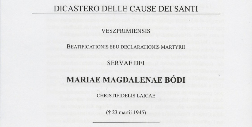 Amikor imádságos lélekkel újból megköszönjük Bódi Mária Magdolnát és mindmáig ragyogó tanúságtételét Istennek, a Veszprémi Főegyházmegye főpásztora elrendelte jelen dokumentum felolvasását a Veszprémi Főegyházmegye minden templomában 2024. augusztus 11-én, az évközi 19. vasárnapon.