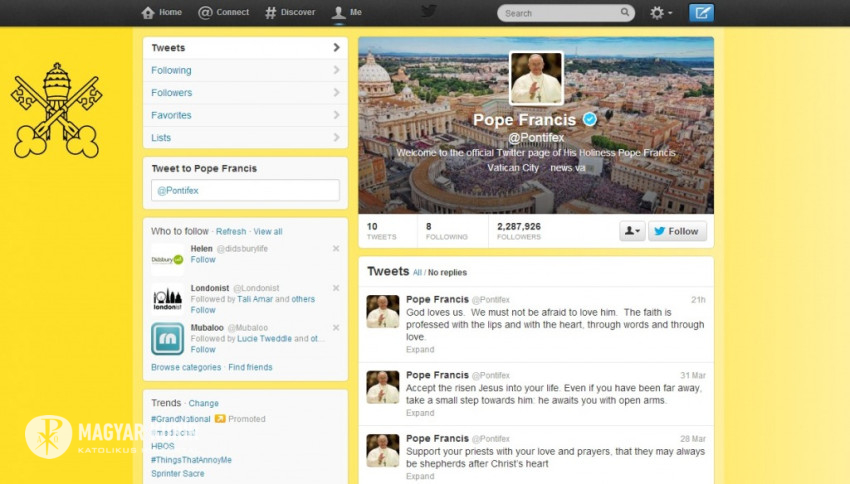Az Osservatore Romano vatikáni napilap Twitter-címének követői is jelentős emelkedtek az út során, jelenleg 45 ezren vannak.