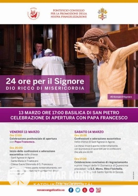 A római egyházmegyében március 13-án délután 5 órakor kezdődik az imanap a Szent Péter-bazilikában a bűnbánati szertartással, amelyet Ferenc pápa vezet. Este 8 órától Róma városközpontjának egyes templomaiban szentségimádást tartanak, és gyónási lehetőséget biztosítanak az éjszaka egy részében vagy egész éjjel. Ezek között van a Navona téri Szent Ágnes-templom, a trasteverei Szűz Mária-templom, a Torre Argentina téri Szent Ferenc-templom és a Szent Lőrinc-templom. Fisichella érsek március 14-én, szombaton 5 órakor vesperást vezet a Santo Spirito in Sassia templomban. Több nyelven lelkipásztori segédkönyvet is kiadtak az alkalomra.