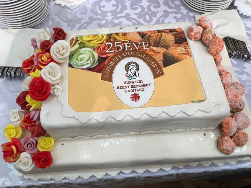 Természetesen a születésnaphoz hozzátartozik a torta is. Az estébe hajló ünnep végén a karitász dolgozói felszelték a tortát, amivel kezdetét vette a jóhangulatú, kötetlen beszélgetésre lehetőséget adó agapé.