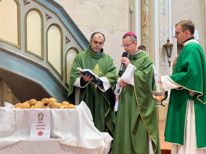 A hagyományokhoz híven, a szentmise végén a karitász munkatársai Szent Erzsébet-kenyeret osztottak ki a híveknek.