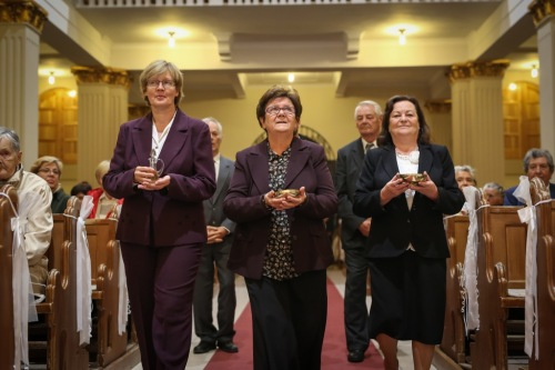 Felajánláskor annak a három nővérnek a szülei, testvérei vitték az oltárhoz az áldozati adományokat, akik hivatása a pestszentlőrinci missziónak köszönhetően született.
