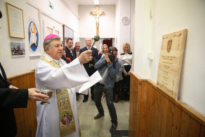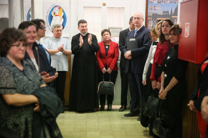 Az intézmény története 25 évét kiállításban dokumentálta, és az iskola falán emléktáblát helyeztek el az épületben, amit Snell György, az Esztergom-Budapesti Főegyházmegye segédpüspöke áldott meg. „Ősidők óta fontos az ember számára életének megörökítése. A múlt jelzésszerű megjelenítése tartja meg az emberek emlékezetében az ősök számára fontos eseményeket. Ennek szellemében helyezzük el most is az emléktáblát. Bár 25 év mindössze egy pont az emberiség történetében, de egy intézmény életében a hőskor. A jubileumot ünnepelve meg kell állni, hálát adni Istennek a 25 évért – ennek szellemében kérem Isten áldását az intézmény és a benne dolgozók életére. Imádkozzunk a mustármagból fává növekedett iskola további kibontakozásáért” – buzdított Snell György.
