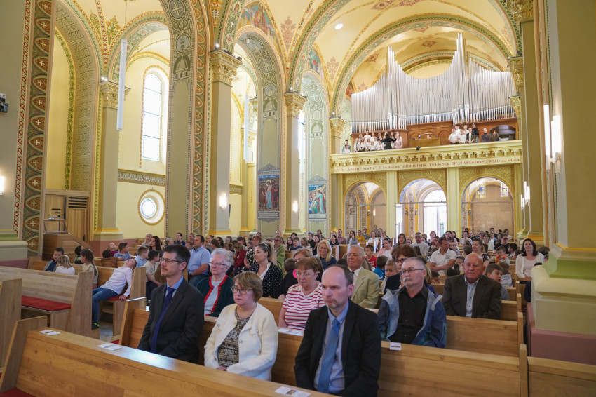 A faültetés után a Nagyboldogasszony-székesegyházban bemutatott szentmisén ünnepelték meg a katolikus általános iskola alapításának évfordulóját. A szentmisét Varga László megyéspüspök mutatta be.