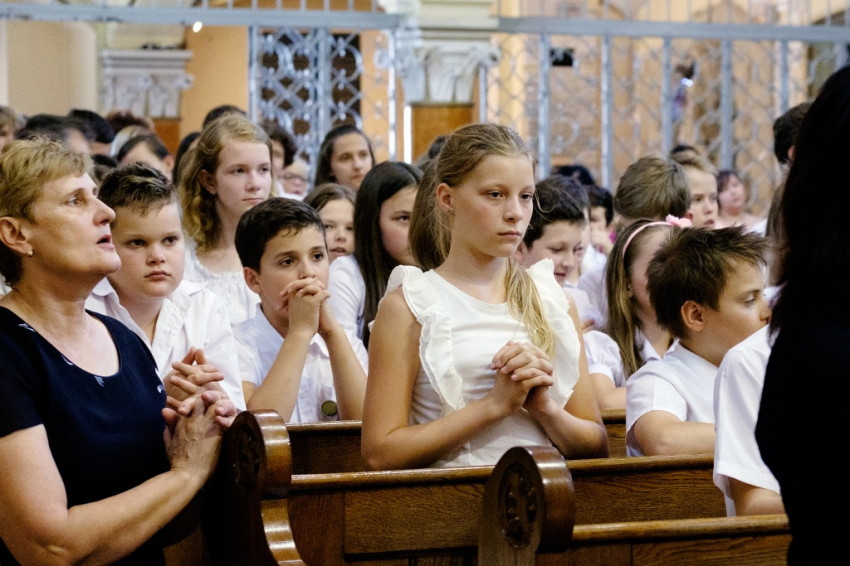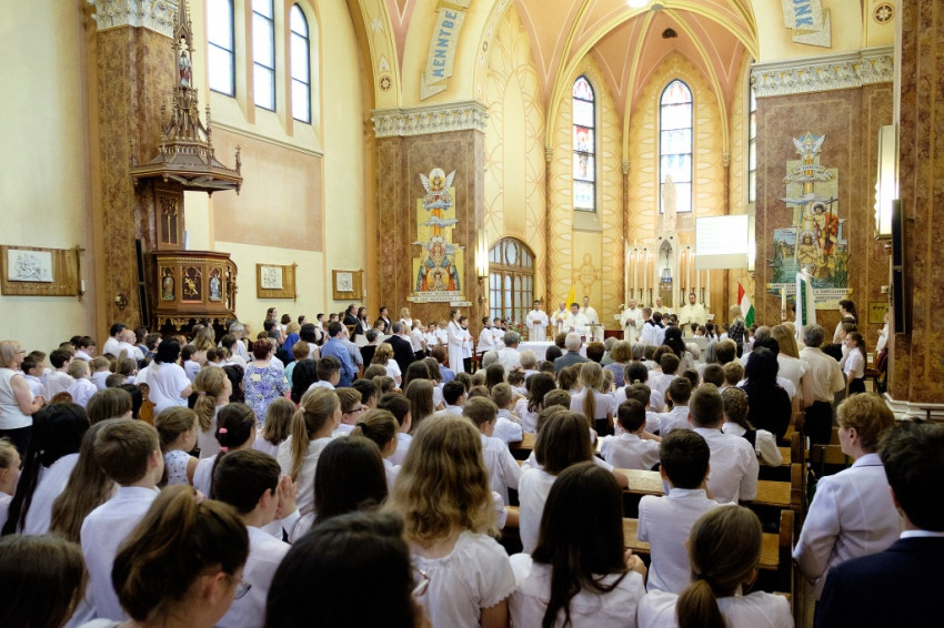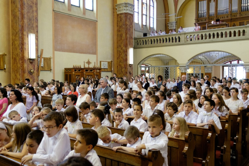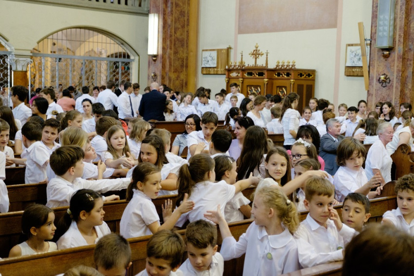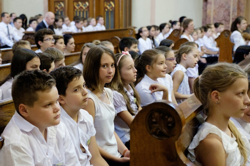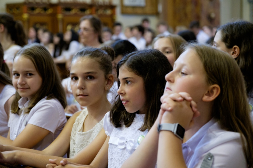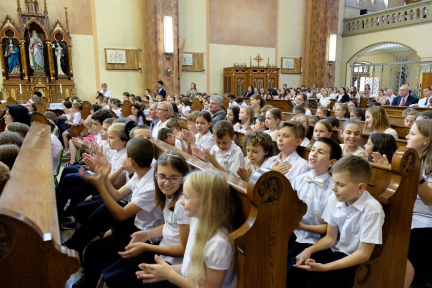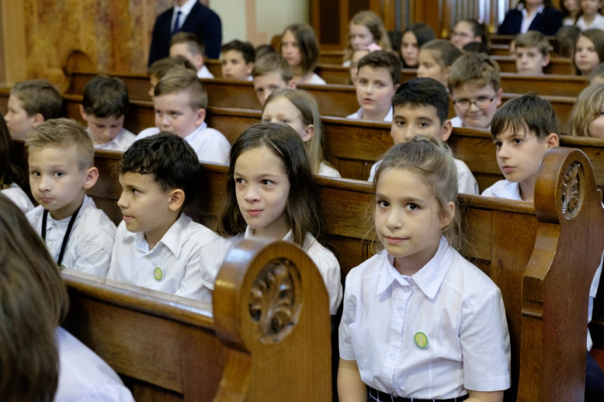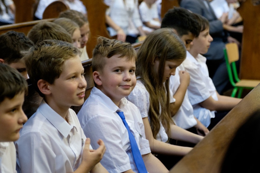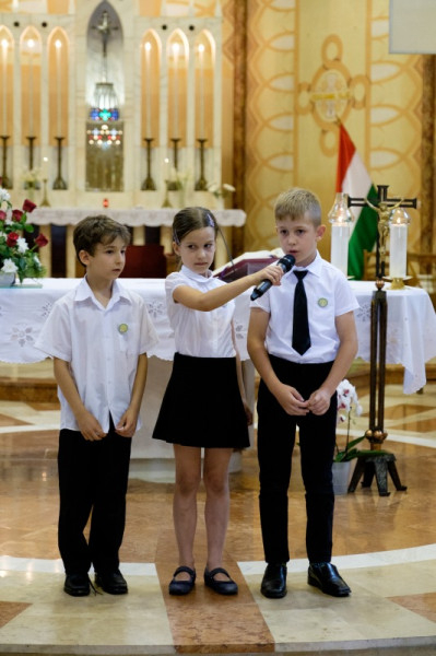 A hálaadó szentmisét követően kezdődött az iskola ünnepi műsora a templomban.