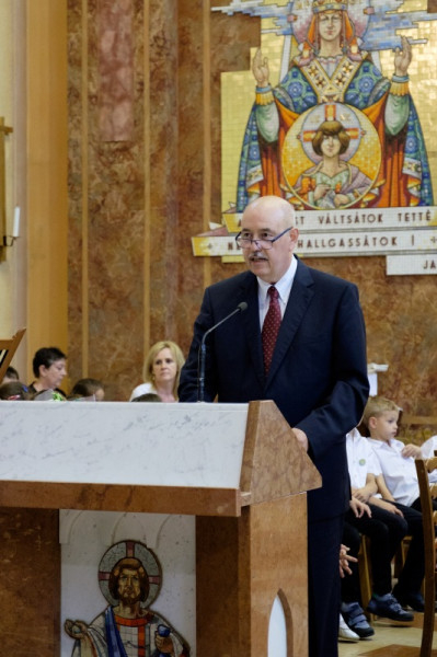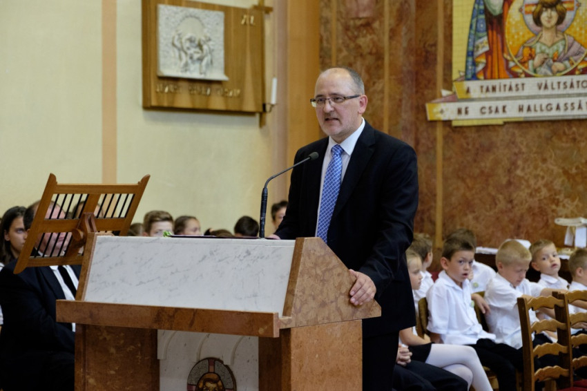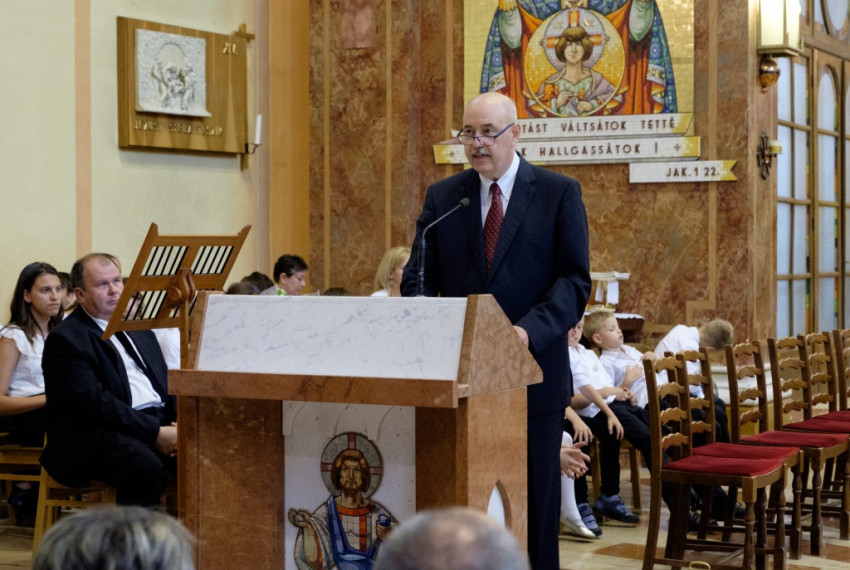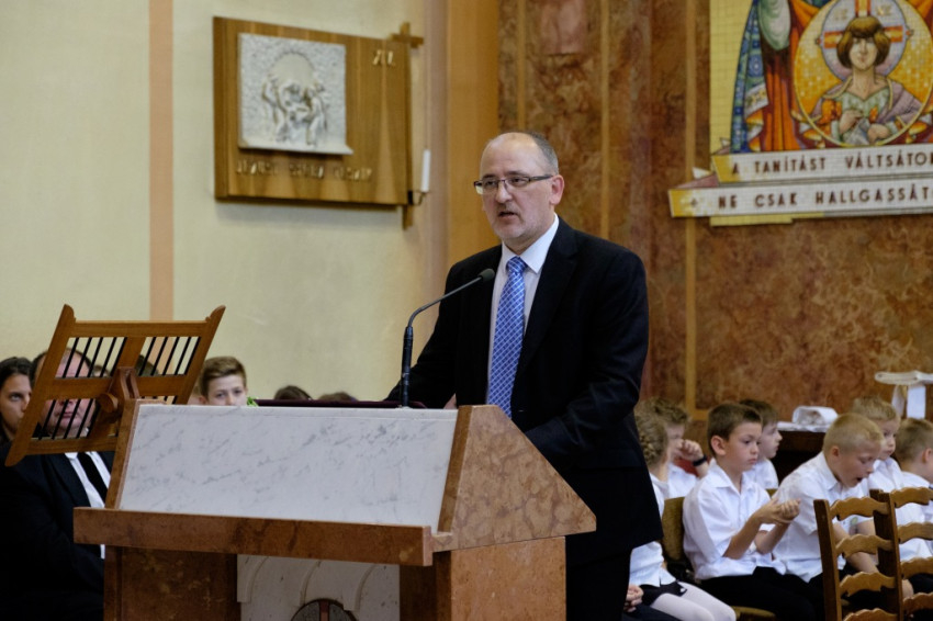 Amikor Istent törekszünk megismerni, hajlamosak vagyunk emberi tulajdonságokkal felruházni, pedig Ózeás könyvében az Úr maga mondja: Isten vagyok, s nem ember – azaz nem úgy gondolkodik, nem úgy cselekszik, mint mi. Jézus szeretetről, megbocsátásról szóló tanítása szintén Istentől való, és mi szeretnénk, hogy az iskolánkban olyan emberek nevelődjenek, akik ezt továbbítják a világ felé. Legfőbb reményünk, hogy a padokból olyan diákok kerülnek ki, akik nemcsak a világot ismerik, hanem annak Teremtőjét is: aki a világot ajándékul adta nekünk – tette hozzá Gyetván Gábor.