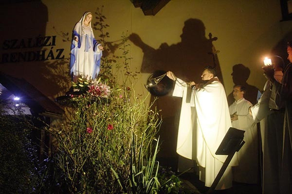 A szentmise után Ábrahám Béla tartományfőnök megáldotta a Segítő Szűz Mária-kápolna előtt felállított új Szűz Mária-szobrot.