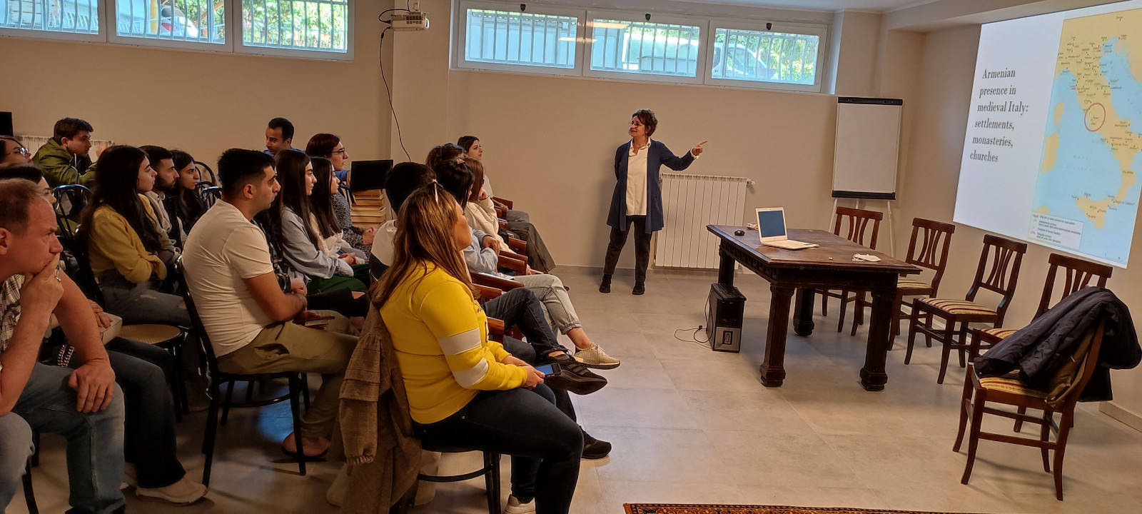 Római tartózkodásunk alatt a Szent István Zarándokházban szálltunk meg, ahol az Isteni Megváltóról Nevezett Nővérek kitüntetett szeretettel fogadtak bennünket. Előadást tartott nekünk a Bolognai Egyetem professzor asszonya, Anna Shirinyan a Rómában található örmény kulturális örökségről és az örmény katolikusokról.