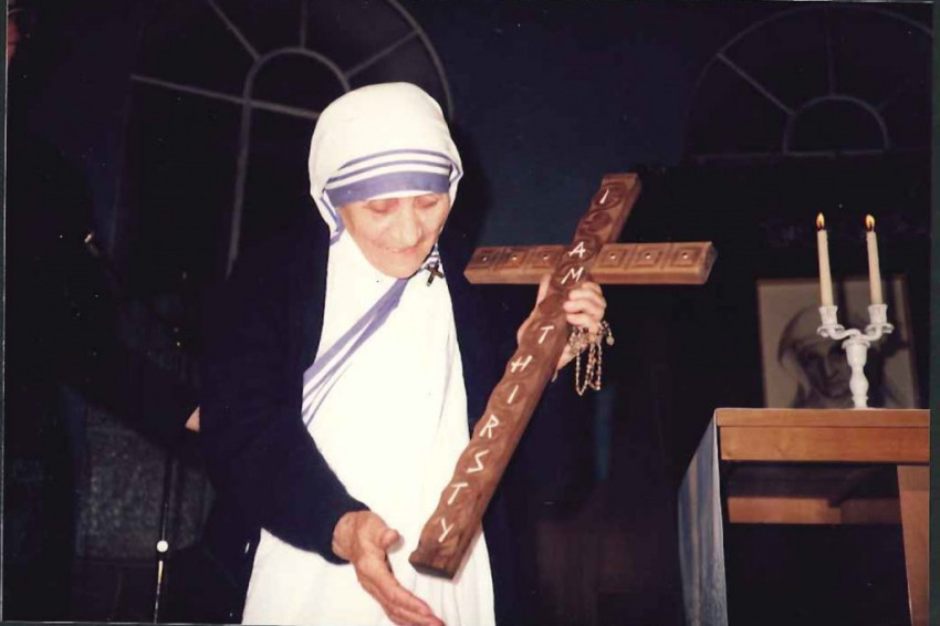 Az iskolanővérek egy keresztet ajándékoztak Teréz anyának, rajta Krisztus szavával: „Szomjazom!” Teréz anya kifejezve örömét így köszönte meg az ajándékot: „Kongregációnk célja, hogy egyesüljünk azokkal, akik Jézus szomjúságát szenvedik.”