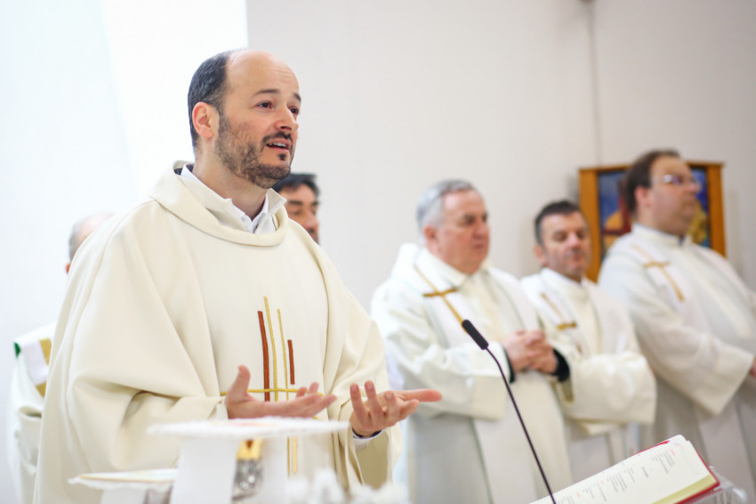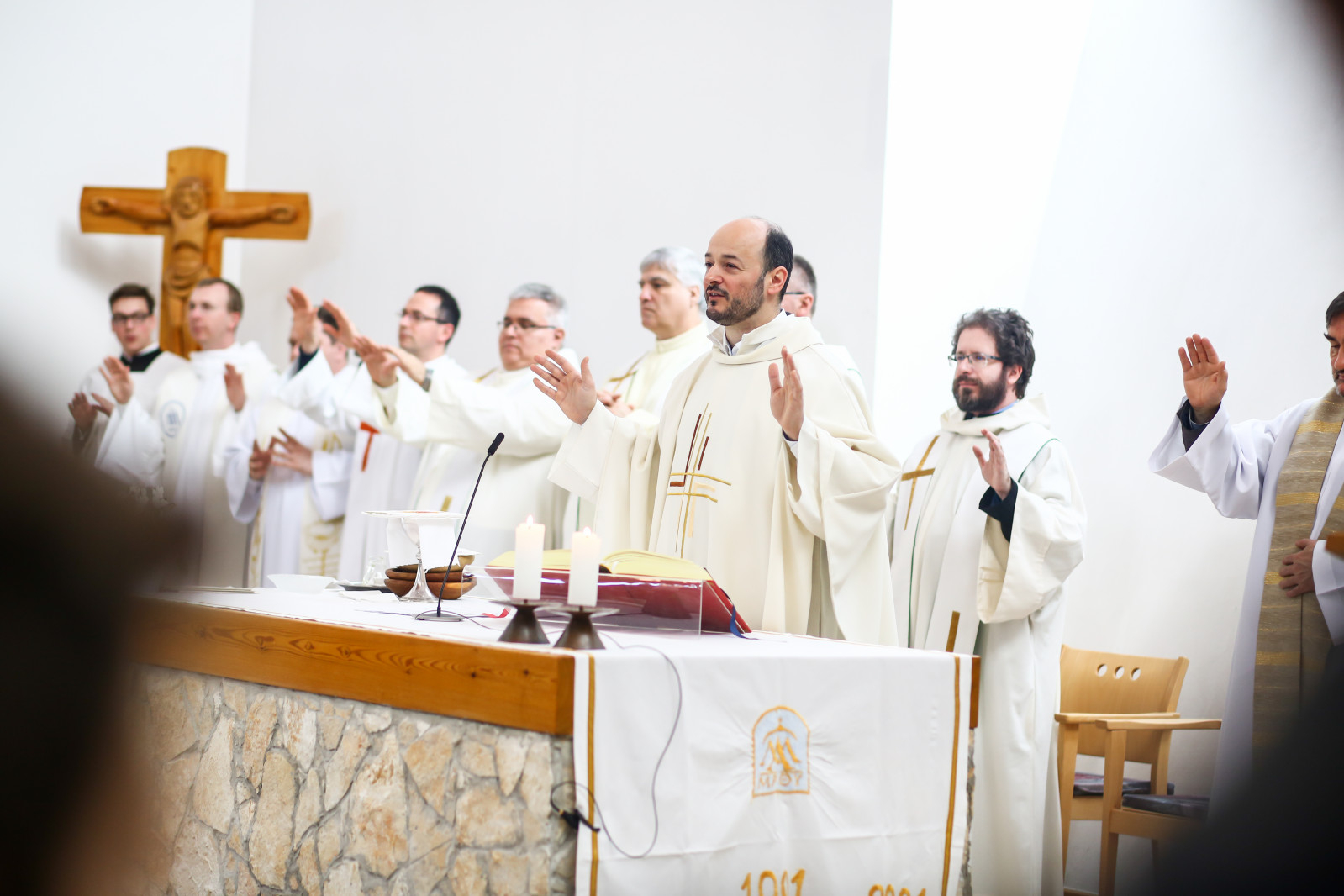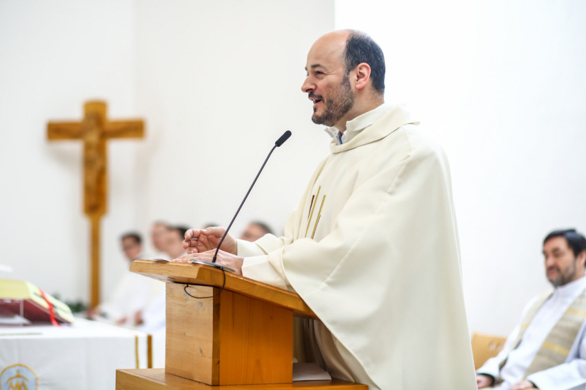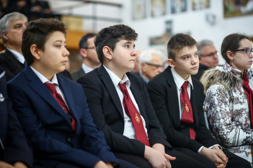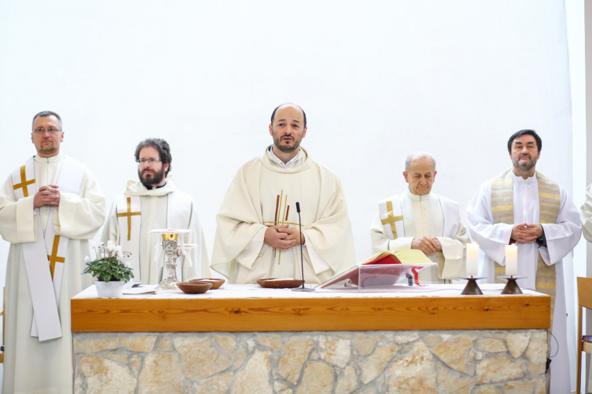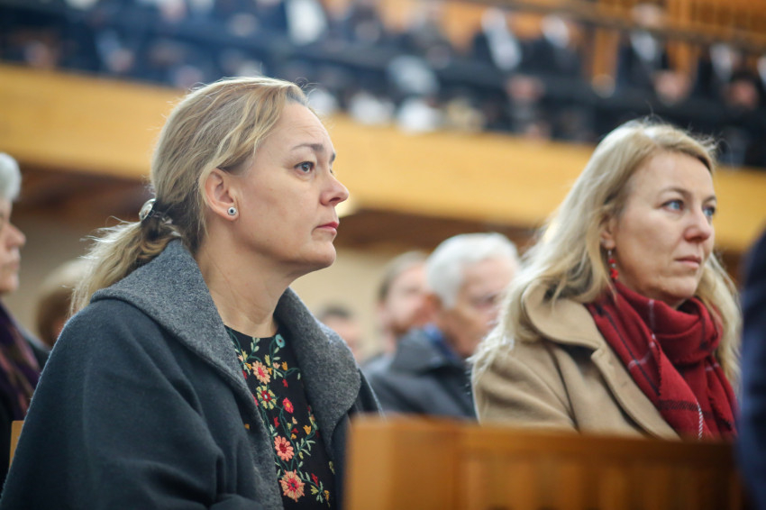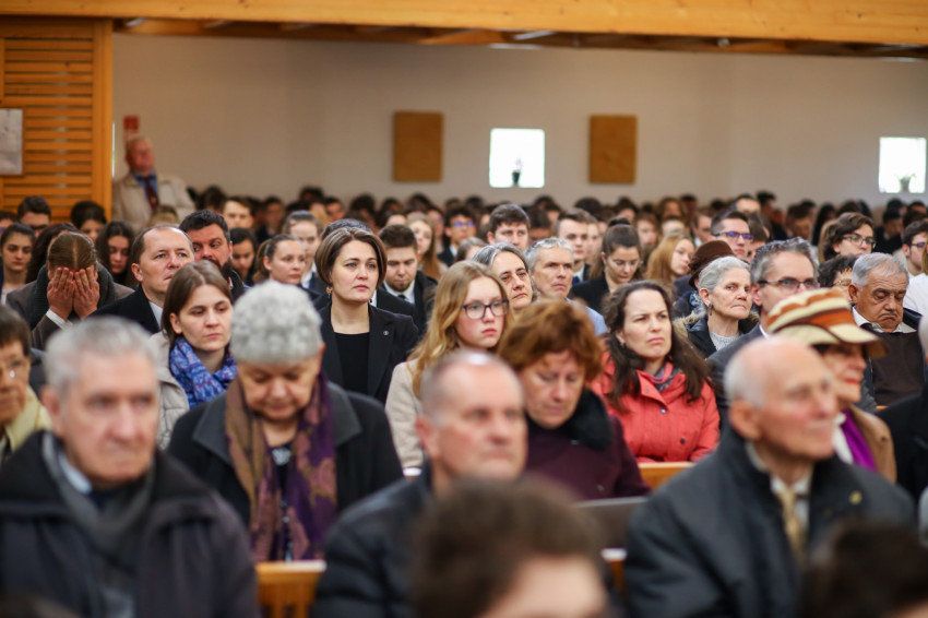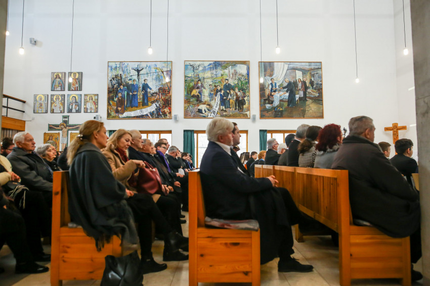 „Meghatottság van bennünk az elmúlt 300 évre visszagondolva, ami még erősebb amiatt, hogy ez a múlt nemcsak a szavak szintjén jelenik meg, hanem vendégeink által is, akik történelmünk újkori időszakához kötődnek” – köszöntötte Keserű György a templomot megtöltő tanár-, diák- és vendégsereget. – A szentmisében szeretnénk megnyílni Isten felé. Gondoljunk azokra, akik mellé itt, az iskolában oda tudunk szegődni, akikkel megoszthatjuk dolgainkat, akik kísérnek bennünket. Így vagyunk Istennel is, próbáljuk meg most kitárni szívünket Isten felé, aki minden szeretet forrása.”