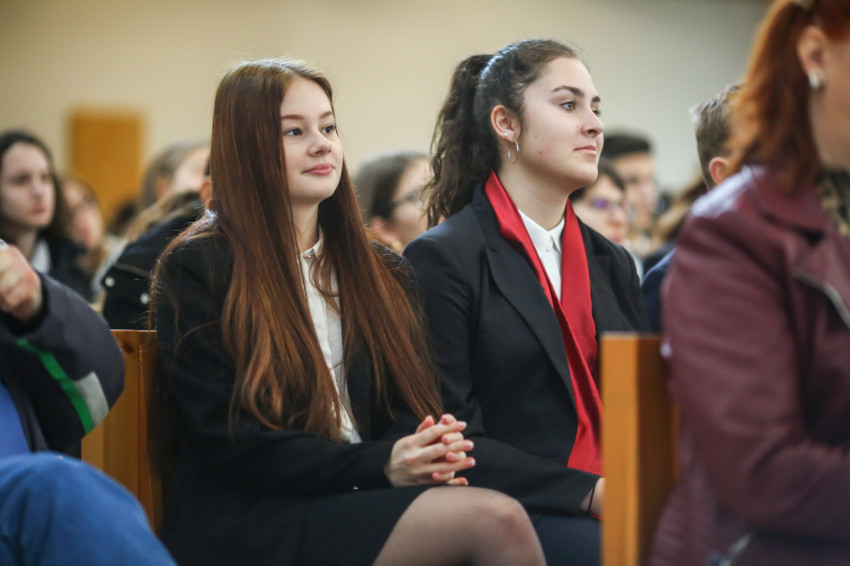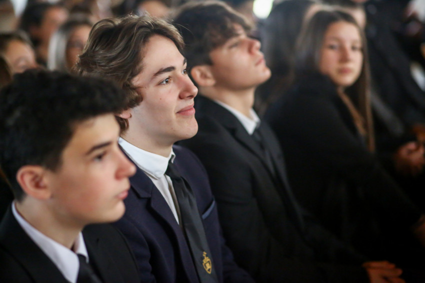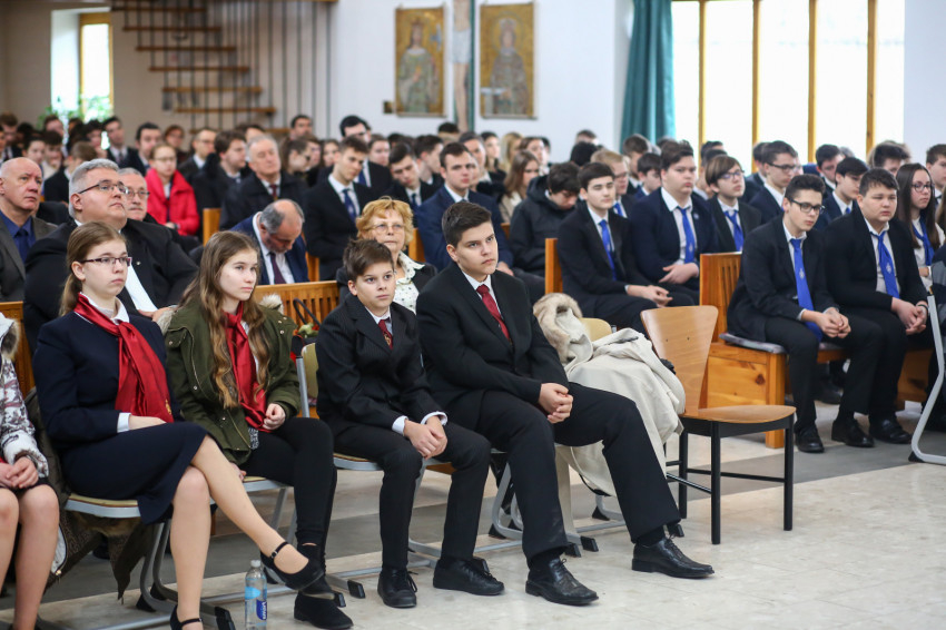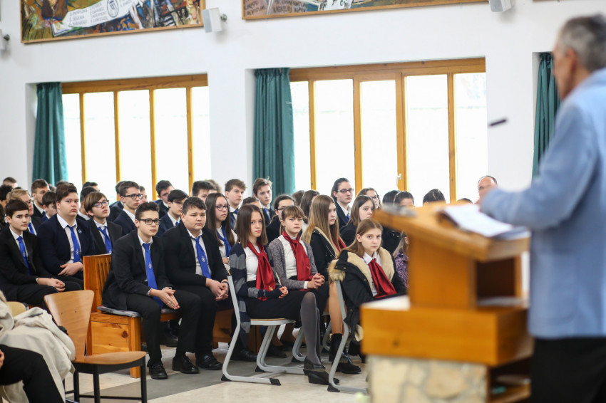 „Leonidász seregéhez pásztornépek akarnak csatlakozni. Mi a mesterséged? Fazekas, szobrász, kovács – válaszolják. Leonidász a spártaiakhoz fordul, akik teli torokból kiáltják: Katona, aki soha nem hátrál meg!” – Keserű György a gimnázium Facebook-oldalán keringő filmből idézett fel egy jelenetet rámutatva arra, milyen fontos, hogy a teljes igazság kimondásával tudjunk felelni a személyünket firtató kérdésekre. A szónok evangéliumi példával is alátámasztotta ennek fontosságát: Jézus addig nem elégszik meg a „kinek tartanak engem?” kérdésre kapott válaszokkal, amíg a teljes igazság el nem hangzik. „Ezt kell megtanulnunk nekünk is. Ne elégedjünk meg azzal, hogy eltitkoljuk érdemeinket, hogy kevesebbet állítunk magunkról. Aki viszont túlságosan nagyra van magával, ne feledje, nem lenne az, aki, ha nem segítettek volna neki sokan idáig eljutni. Ne mondjak a valóságnál sem többet, sem kevesebbet – állapította meg a szónok.