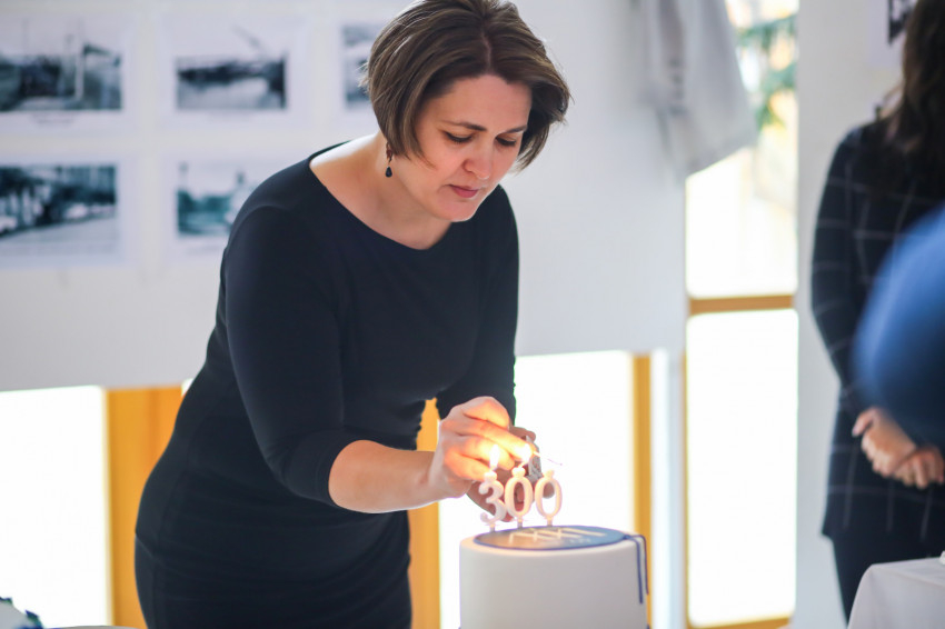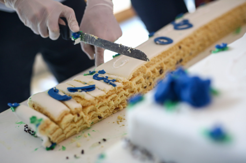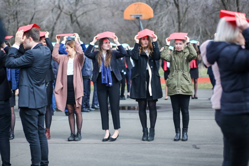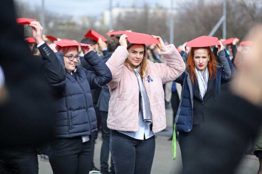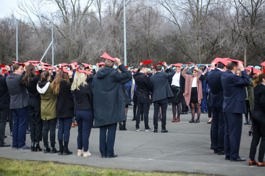 Az aulában az ároni áldással és tortával köszöntötték fel a „születésnapost”, majd az egész közösség az udvarra vonult, hogy élőképet alkossanak. Piros, sárga és kék színű lapokkal „írták ki”: Szeged, Piarista, 300, amit fentről egy drón fényképezett. Ezután kezdődött a szentmise az iskola teljes diákságának részvételével. A főcelebráns Keserű György SchP, a szegedi közösség házfőnöke volt, koncelebrált számos piarista és confráter paptestvér.