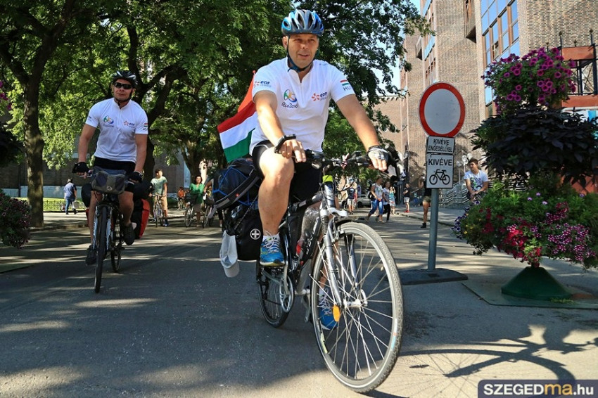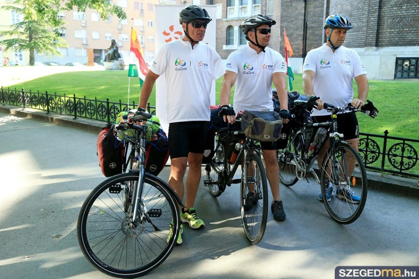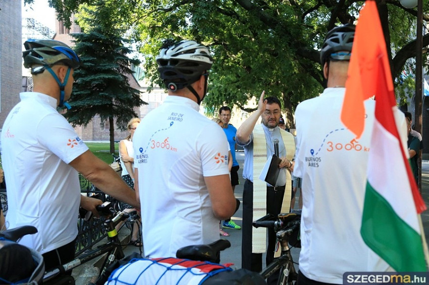 A három szegedi kerékpárost vasárnap reggel Kondé Lajos, a szegedi dóm plébánosa áldotta meg, és az EDF DÉMÁSZ szurkolócsapata búcsúztatta őket. Még a dóm harangjai is megkondultak, amikor elindultak. A sportemberek a tervek szerint július 15-én indulnak majd el Buenos Airesből, és augusztus 13-án érkeznek meg Rióba. A csapat útja folyamatosan nyomon követhető a Kerékpárral a riói olimpiára Facebook-oldalon.