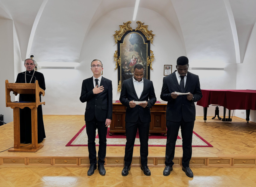 A tanévnyitó Veni Sancte a három új elsőéves kispap eskütételével, majd a himnuszok eléneklésével zárult.