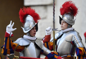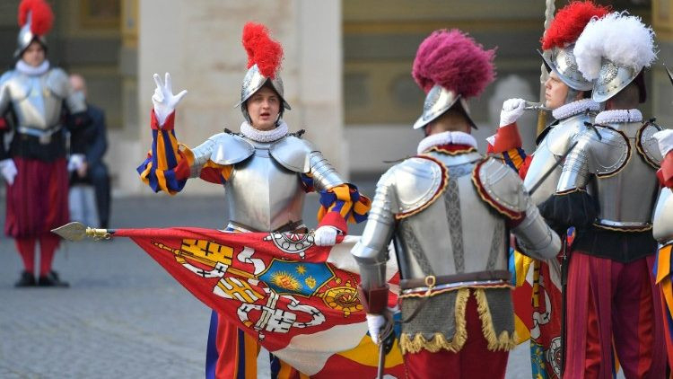 A pápa köszöntötte Christoph Graf ezredest, a gárda kapitányát, a tiszteket és altiszteket, a testület káplánját és főként a 36 újonc gárdistát, akik az eskütétellel belépnek a Svájci Gárda nagy családjába, készen arra, hogy életük néhány esztendejét egy vonzó és egyben felelősséggel teli feladatnak szenteljék az egyetemes egyház szívében. A Svájci Gárda megalakulása óta sok fiatal töltötte be ezt a egyedülálló szolgálatot. Nagylelkű és hűséges elkötelezettségük révén a századok során néhányan a legnehezebb megpróbáltatásokkal néztek szembe, s ha kellett, még a vérüket is ontották, hogy megvédjék a pápát, lehetővé téve számára, hogy teljes függetlenségben végezze küldetését. A szabályzatuk szerint ma is legfőbb elhivatottságuk a pápa személye és lakóhelye biztonságának garantálása.